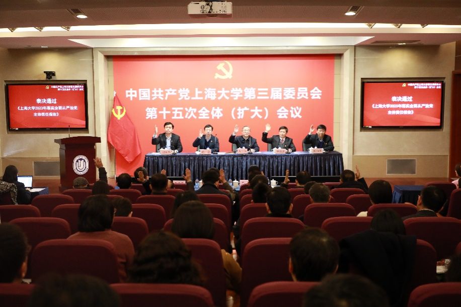 1月29日,中国共产党永利集团88304官网第三届委员会第十五次全体(扩大)会议在宝山校区召开。校党委委员出席会议。校纪委委员、部分党代表、各单位负责同志、党风廉政监督员、部分人大代表及政协委员等列席会议。