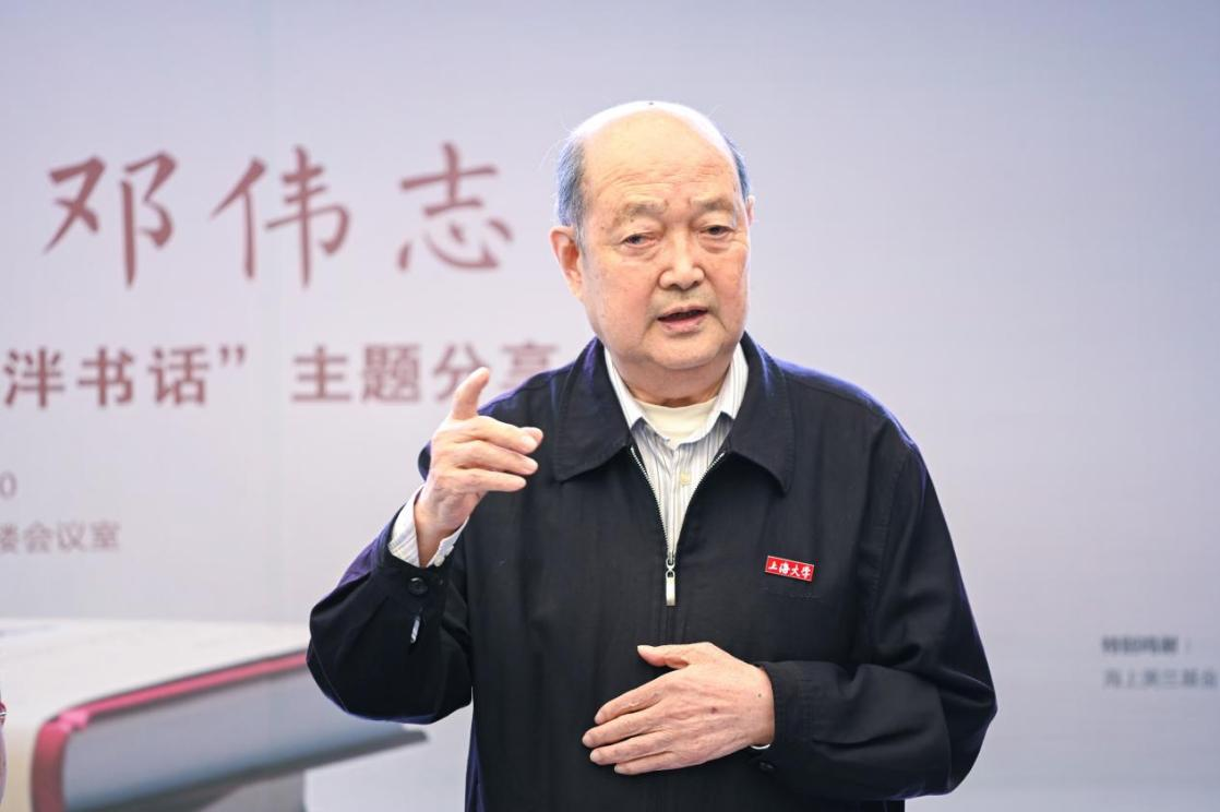 随后,邓伟志教授发表了谦逊质朴、饱含深情的致谢词。他依次感谢了书作者、出版社、学校师生、各主办单位和海上美兰基金的支持,表示将用“继续奋斗”报答大家的涌泉之恩,把热血洒在泮池边,把文章写在祖国的大地上,报百年上大之恩,报党和国家的救命之恩。