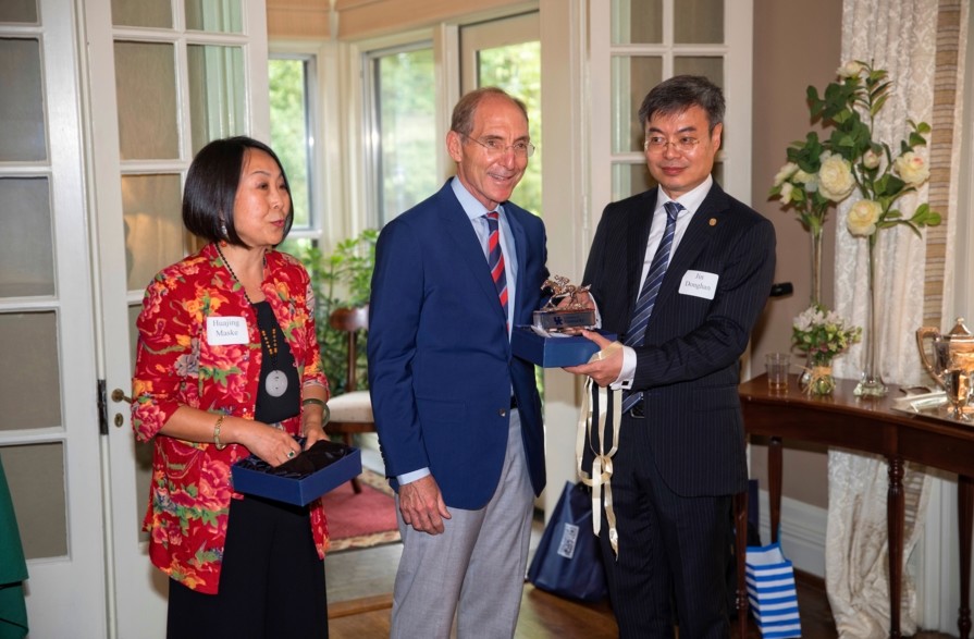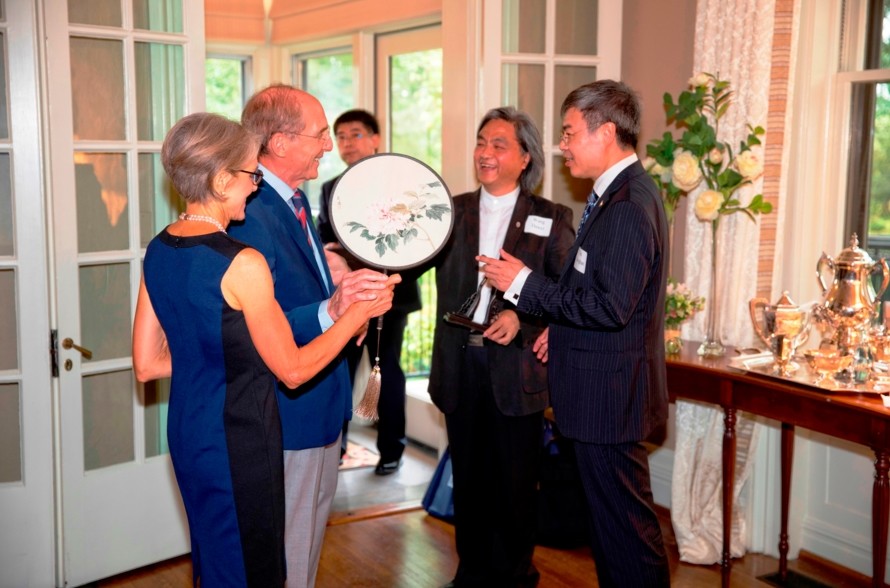剪彩仪式结束后,肯塔基大学校长伊莱卡皮罗托博士盛邀与会嘉宾做客校长官邸,致辞答谢各方参加剪彩仪式的嘉宾、祝贺永利集团88304官网教育周开幕。永利集团88304官网校长金东寒院士和吉林大学副校长吴振武博士分别代表两校向肯塔基大学赠送礼品。冷餐会上,来自北京语言大学孔子学院海外巡演团的内蒙古音乐家们身着民族盛装向嘉宾们表演了马头琴、呼麦和长调,深情悠扬的歌声穿越语言时空的阻隔将中美两国宾朋的思绪带到辽阔无际的草原。永利集团88304官网校长金东寒赞叹“即使在国内,也很难听到如此美妙的呼麦”。随后修华静院长向来宾介绍了湖北民间工艺大师刘小红的大冶刺绣和永利集团88304官网美术学院非物质文化遗产工作室竹编项目负责人程丽的手工竹编礼品。