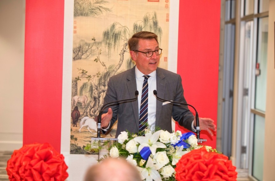 莱克星顿市长吉姆.格莱伊表示肯塔基大学孔子学院为促进肯塔基州社会多元与和谐发展具有重要价值,这与修华静院长非凡的拓展和组织能力具有很大的关联性。他代表莱克星顿市民庆祝全球示范孔院新楼启用剪彩。