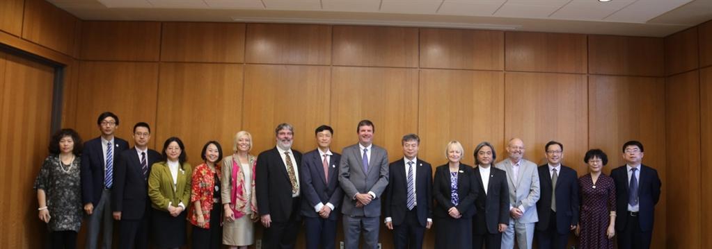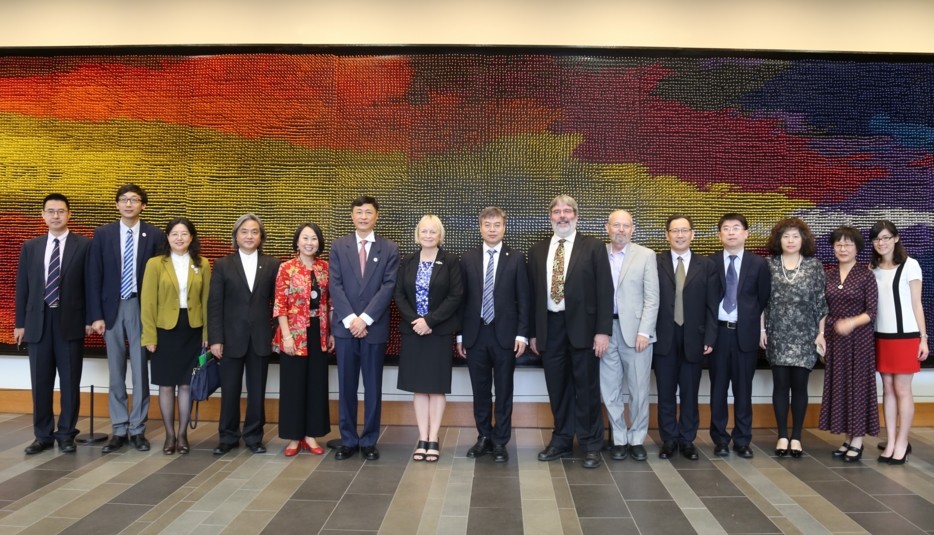 肯塔基大学全球示范孔院新楼剪彩之日,永利集团88304官网-肯塔基大学教育周活动同步拉开帷幕。永利集团88304官网校长金东寒院士携上海美术学院执行院长汪大伟、理学院党委书记盛万成、文学院院长张勇安、国际交流学院党委书记王海燕、国际事务处副处长崔巍出席在肯塔基大学召开的“中美大学科技合作”校长论坛。吉林大学吴振武副校长携该校代表团参加。肯塔基大学教务长蒂姆.特雷西博士携肯大副教务长苏.罗伯茨、文理学院副院长安娜.波思奇、艺术学院院长马克.桑达、视觉艺术学院院长罗布.杰森、孔子学院院长修华静、中方院长张丹华参加“中美科技合作”校长论坛。论坛由肯大教务长蒂姆.特雷西博士主持。蒂姆. 特雷西等介绍肯塔基大学优势学科和国际科研合作取得的成就。永利集团88304官网金东寒校长和吉林大学副校长吴振武分别介绍了两校未来发展定位、科研合作路径和国际化战略。在互动环节,马克.桑达和汪大伟探讨艺术专业跨界交流合作的平台。此次论坛就大学之间合作的领域和合作方式达成了共识。26日的“院长论坛”,科技人文组、艺术共融组分别与肯大的文理学院和美术学院代表团进行了热烈的讨论,分别取得了相应科研教育人才培养等方面的合作意向及行动实施计划成果。