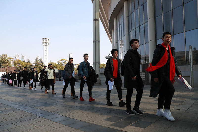 此外,学院还派出了一支年轻的教师队伍辅助面试官的工作,同时组织了400余人次的学生志愿者参与招生考试期间引导、信息确认、考场服务、摄像、摄影灯各项任务,为考生与考试工作人员提供各类帮助,日夜坚守在考试现场;由于面试官的多样性,学院办公室每天为面试官及考务工作人员个性化定制“吃、住、行”,确保他们安心工作、无后顾之忧;表演三试当天,气温骤降,考务人员立即决定转移候考区,让考生感受到了永利集团88304官网的温暖;面试第三天下午,仍有考生从外地赶来,考官们仍设法给晚到的考生一次面试的机会。考生们连连称赞说,永利集团88304官网真好,既重视考试规则,又有人情味。