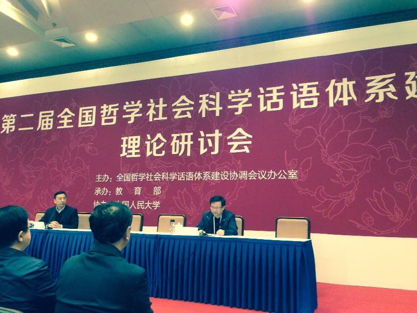 11月14日,由全国哲学社会科学话语体系建设协调会议办公室主办、教育部承办、中国人民大学协办的第二届全国哲学社会科学话语体系建设理论研讨会在中国人民大学召开。中国社会科学院院长王伟光、教育部部长袁贵仁等出席会议并讲话。中共中央党校、国家行政学院、中央文献研究室、中央党史研究室、中央编译局、国务院新闻办、中国外文局等有关部委负责同志及相关专家学者共120余人参加了会议。