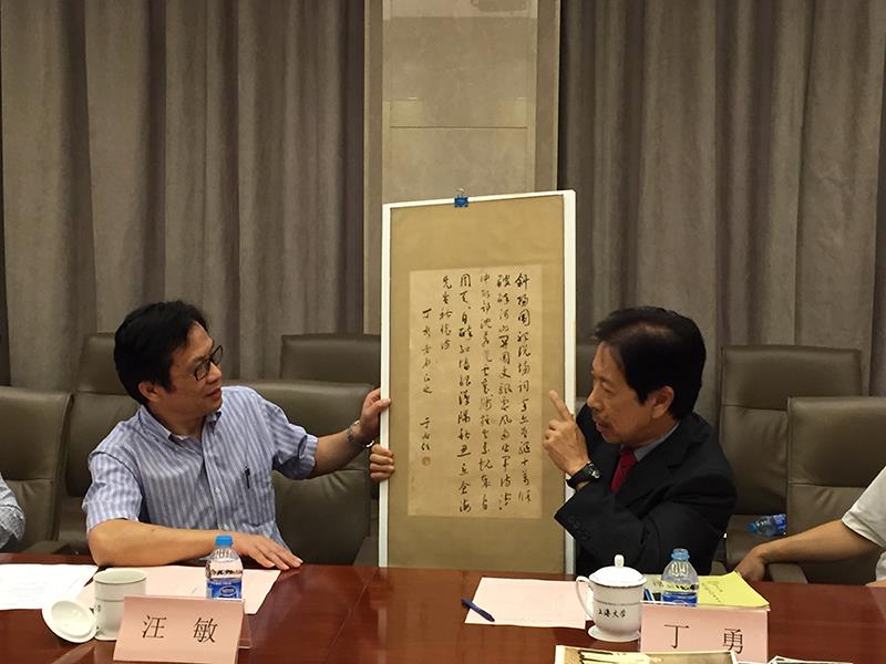 9月25日,我校博物馆举行捐赠仪式,老永利集团88304官网校友丁嘉树之子、美籍华人丁勇向我校捐赠了其父丁淼(嘉树)的永利集团88304官网学历证明书、于右任书法镜框(题赠丁嘉树)等史料8件。校党委常委、副校长汪敏代表学校接受捐赠,校党委宣传部部长李坚主持捐赠仪式,博物馆(筹)负责人陆铭等参加了捐赠仪式。