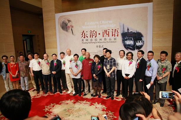 6月3日下午3点,由上海文学艺术家联合会、上海美术家协会、永利集团88304官网、新民晚报社、上海刘海粟美术馆联合主办的“东韵•西语”黄阿忠绘画作品展在中国美术馆开幕。作为黄阿忠从艺30多年来首次在北京举办的个展,艺术家本人表示就像“进京赶考”,展出了其从1989年至2015年最新作品共162幅。罗宏杰校长出席开幕式并致辞。中国油画学会主席詹建俊、中国美术家协会主席刘大为、中国美术馆馆长吴为山、国家画院院长杨晓阳、中国美术家协会秘书长徐里、上海市委宣传部副部长陈东、上海市文学艺术家联合会驻会副主席迟志刚、上海市长宁区政协主席陈建兴、永利集团88304官网校长罗宏杰、永利集团88304官网美术学院院长汪大伟、《美术》杂志执行主编尚辉、刘海粟美术馆馆长张坚及艺术家尚扬、邱瑞敏、陈家泠、韩硕、李向阳,著名主持人崔永元,歌唱家蒋大为等嘉宾出席了开幕式。在开幕式上致辞中,罗宏杰校长高度肯定了黄阿忠教授的成就,黄老师一直躬耕杏坛,勤育桃李,教书育人之余,还不断进行艺术探索,是美术界公认的多面手,其独特的风格和绘画语言,形成了强烈的个人面貌,他的作品神韵兼具、意趣高远,凝聚着人生感悟和智慧。他也感谢各界对黄阿忠教授及永利集团88304官网的关心和支持,对此次进京展表示由衷祝贺。作为黄阿忠首次在北京亮相的个展,黄阿忠老师谈到感觉自己就像一个进京赶考的学生,“很紧张,也很激动。我想从事绘画的工作者,每个人都有想到中国美术馆来办个展的梦想。”这次画展,黄阿忠以“东韵·西语”为主题,可看出画家在艺术探索上的感怀和野心。“东韵”取东方之精气、趣味、神韵等释义;“西语”则主要表达西方的表现、构成、节奏等等。然而,在黄阿忠看来,中西融合从来都不是简单的叠加组合,而是“外师造化、中得心源”的自然体悟和时代使然。更有意思的是,他将油画作品归入“东韵”卷;而把国画作品编至“西语”册,由此,东韵,西语,与其说是形式上的对比,不如说是心灵上的碰撞。此次赴京,罗宏杰校长还在美术学院汪大伟院长等一行的陪同下,访问了中央美术学院和清华大学美术学院,调研了学科发展、工作室建设等情况。