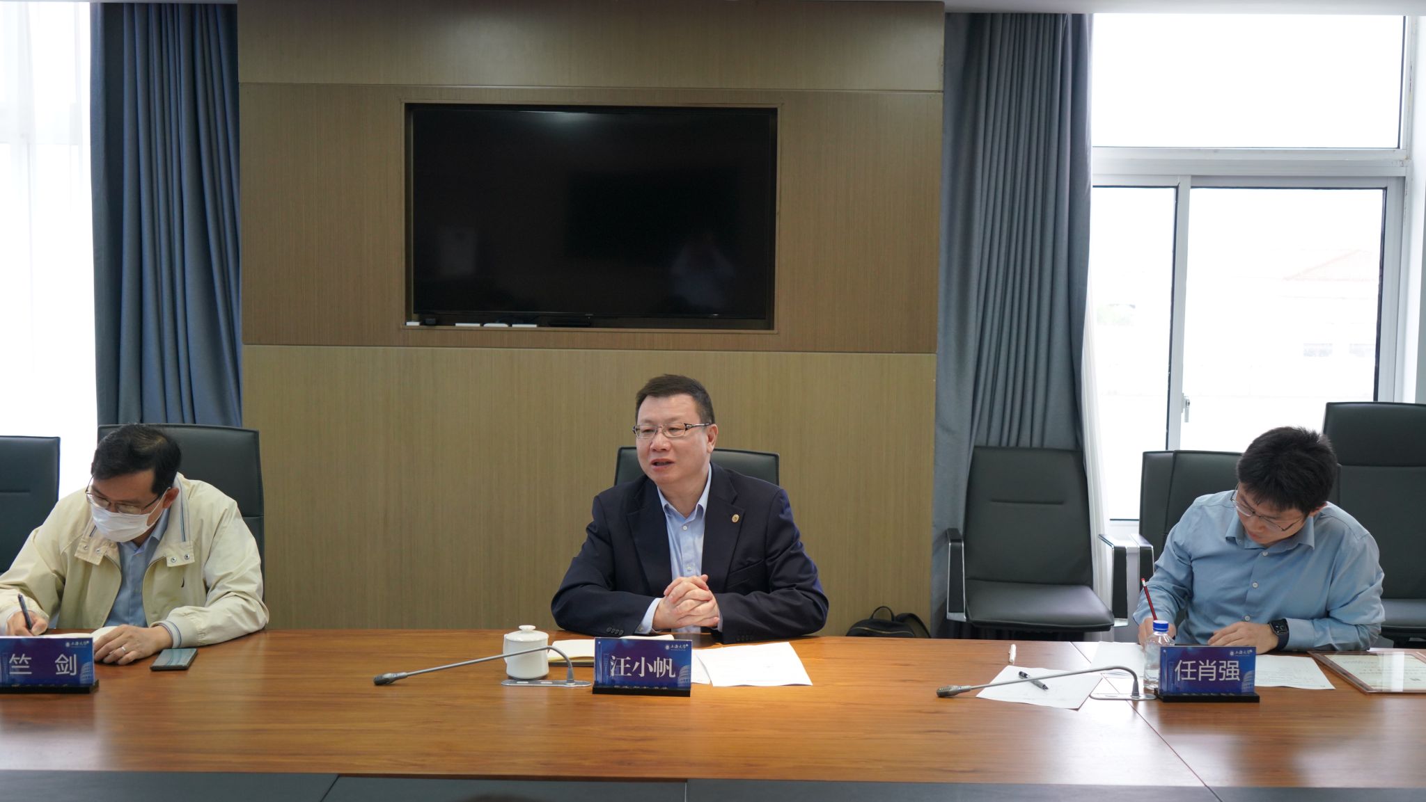 汪小帆副校长总结发言,他首先祝贺教授委员会的成立,并希望教授委员会规范高效地运转,成为管理标杆。同时希望各位委员积极履行自身责任,在人才引进、职称晋升、学科建设等方面为学院提供好决策咨询,推动学院教育质量和研究创新的提升。