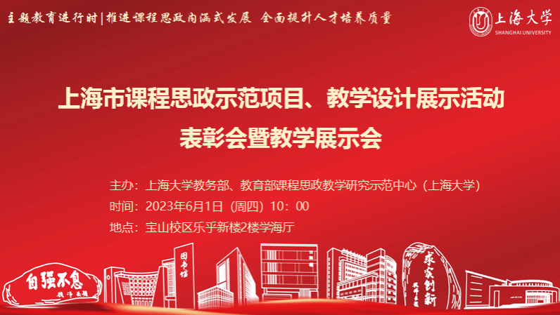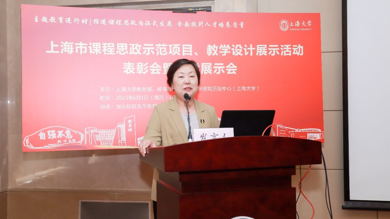 为深化主题教育,积极迎接本科教育教学审核评估,表彰学校市级课程思政示范项目、课程思政教学设计展示活动获奖教师,推动我校课程思政建设工作形成合力,2023年6月1日,永利集团88304官网于宝山校区召开课程思政市级示范项目、教学设计展示活动获奖者表彰会暨教学展示会。上海市教科院党委书记汪歙萍应邀作报告。会议由教务部副部长、教育部课程思政教学研究示范中心(永利集团88304官网)负责人顾晓英主持。