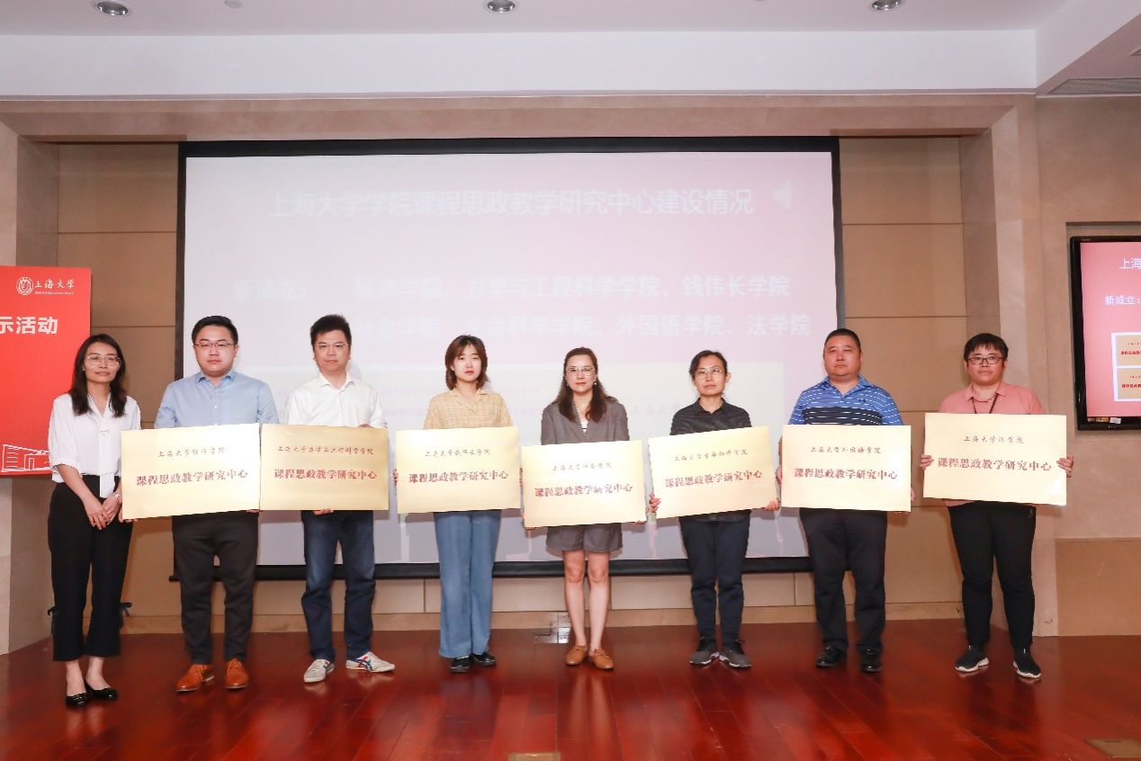 会上,顾老师还通报了悉尼工商学院、上海美术学院、文学院等已挂牌成立课程思政教学研究中心的基本情况,并为经济学院、社会学院、外国语学院、生命科学学院、力工学院、钱伟长学院、法学院等学院课程思政教学研究中心授牌。