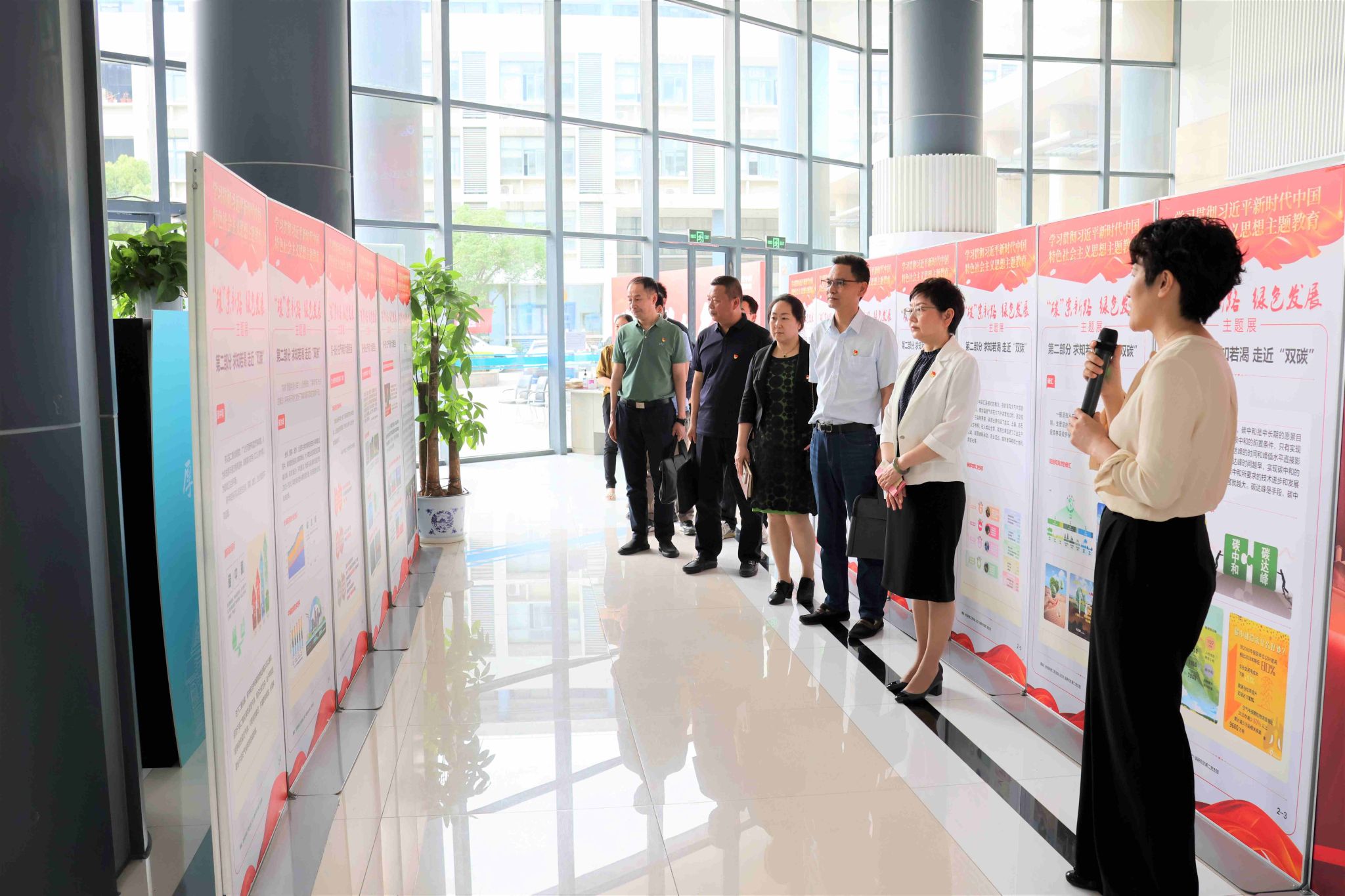 “‘碳’索新路 绿色发展”主题展是环化学院党委开展学习贯彻习近平新时代中国特色社会主义思想主题教育的创新形式。学院党委将牢牢把握“学思想、强党性、重实践、建新功”的总要求,深化 “1+N”红色党建推动绿色发展联盟,完善校地企协同高质量科技攻关及协同育人体系,持续推动主题教育走深走实,为建设美丽中国贡献上大环化力量。