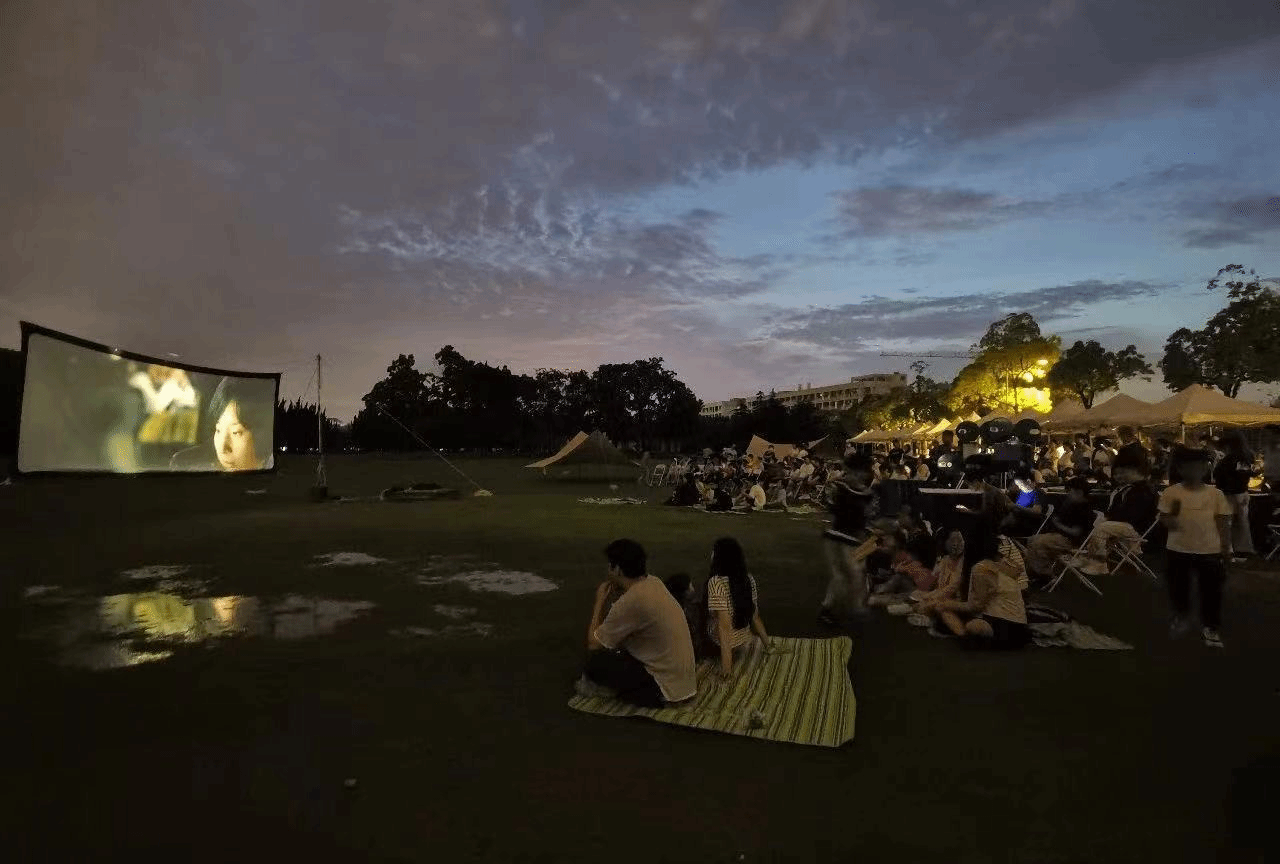 校庆日当天,校友会精心筹备了临泮市集,让校友们返校“逛不停”。同时,校友会联合上海电影学院放映部,在泮池草坪放映胶片电影,临泮夜映的美好氛围赢得校友与在校师生好评连连。