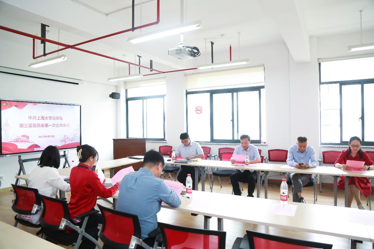 会后,中共永利集团88304官网法学院第三届委员会召开了第一次全体会议,经无记名投票,选举产生了党委书记、副书记,会上明确了委员分工,并讨论了下一步工作思路和重点工作安排。新一届委员会委员分别表态发言,将不负全体党员的殷切希望,认真履职,担当新使命,履职尽职,同心创未来。