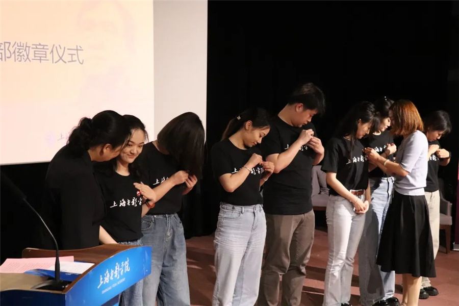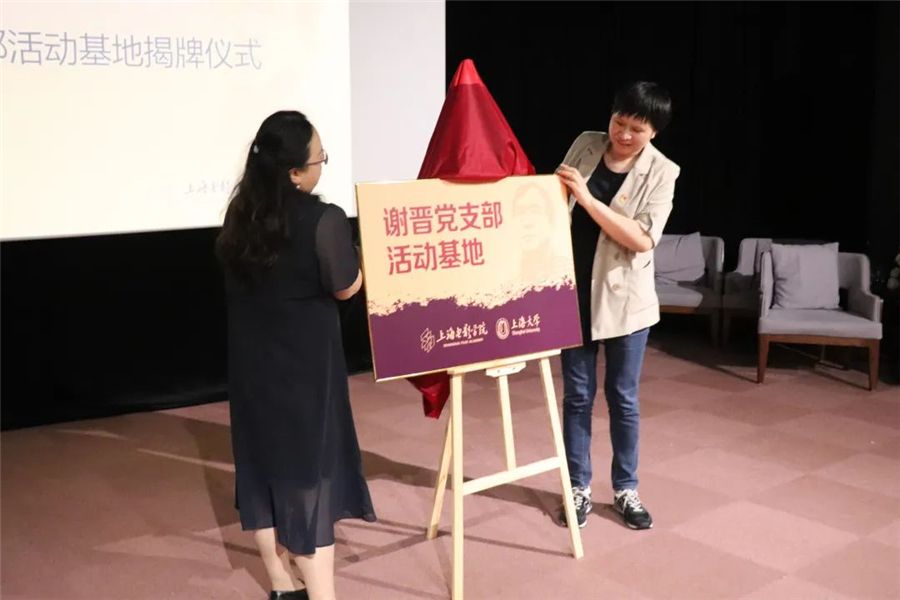 党委教师工作部副部长孙琦琰老师、党委宣传部融媒体中心副主任谢瑾老师上台,共同为谢晋党支部的活动基地揭牌。永利集团88304官网党政办公室延长校区综合办公室副主任王霖老师、上海电影学院党委副书记倪瑜老师为谢晋党支部党员授予徽章。而后,谢晋党支部的学生党员代表李雨晨同志发表了传承谢晋精神的承诺。