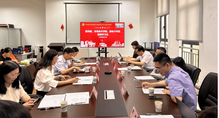 为进一步落实国家重大战略,推动高质量发展,深入推进学习贯彻习近平新时代中国特色社会主义思想主题教育,6月19日上午,微电子学院、未来技术学院、医学院在永利集团88304官网宝山校区东区3号楼317会议室召开联组学习会。校实验室与设备管理处处长方建慧,微电子学院党委书记郭纯生,执行院长张建华,党委副书记、副院长袁铭,副院长胡挺,未来技术学院党委书记竺剑,党委副书记、院长彭艳,党委副书记、副院长钱文馨,副院长岳晓冬,医学院党委书记李娟,院长刘斌,副院长姚萱,党委副书记、副院长盛晓娜出席会议。会议由医学院党委书记李娟主持。