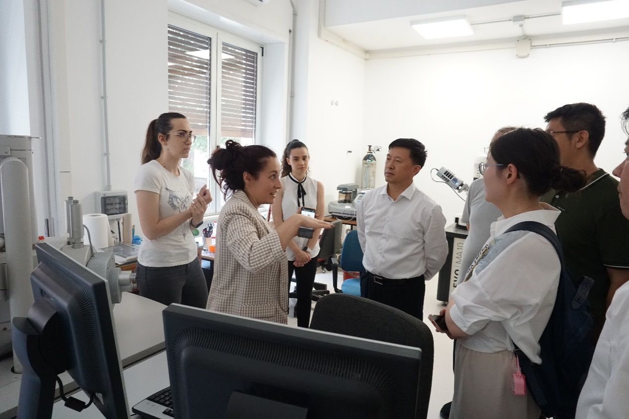 6月22日下午,代表团参观了罗马大学(罗马一大)化学、物理、生物、地球科学实验室,以及罗马大学考古博物馆和复杂系统研究所核磁共振实验室。随行的还包括文信学院院长黄继忠、文化遗产保护基础科学研究院卜凡兴、Gesa、郝鹏骁、程远等学科教授。罗马大学文化遗产科学应用教务部主任Gabriele Favero教授全程陪同。