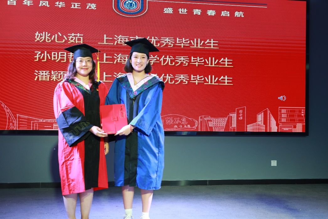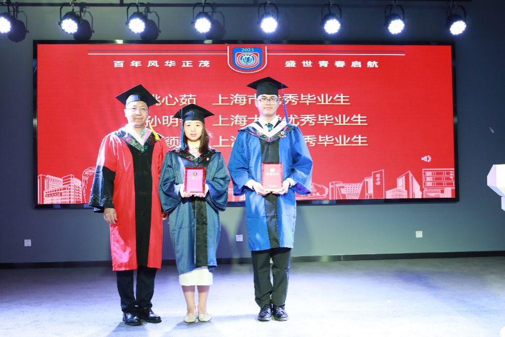 在表彰环节,国际部党委书记王丽娜,国际部党委副书记、国际教育学院副院长陈秀猛为国际教育学院上海市及永利集团88304官网优秀毕业生颁发证书并合影留念。