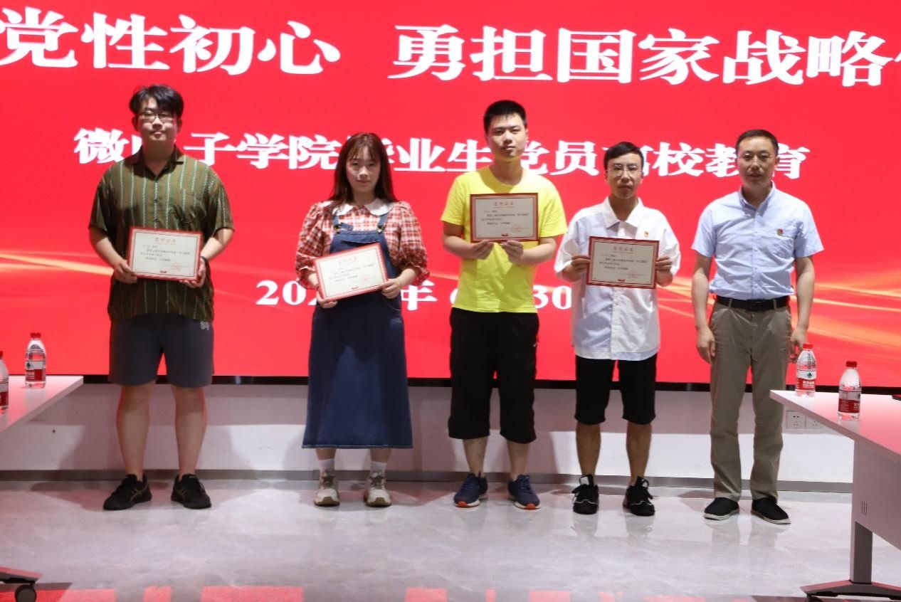 为深入推进学习贯彻习近平新时代中国特色社会主义思想主题教育,强化毕业生党员意识,坚定理想信念。6月30日上午,微电子学院在学院101多功能厅举办“永葆党性初心,勇担国家战略使命”毕业生党员教育,微电子学院党委书记郭纯生,党委副书记、副院长袁铭以及辅导员老师、学院全体毕业生党员共同参加,会议由学院党委组织员魏利老师主持。