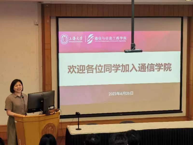 随后,孙晓岚老师作为2022级班主任代表,回忆了多年前来到上大的经历,希望同学们能够以顽强的斗志应对学习,希望成为2022级学生的引路人,帮助同学们在通信学院后三年的专业学习中答疑解惑,欢迎同学们与班主任交流。