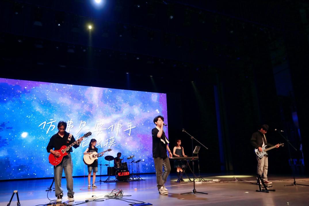 青春不散场,2022届毕业生秦思源和2023届毕业生张硕勋带来的《等你下课》,带着毕业生们回忆着青春与过往;再见,《再星空下见》,2023届毕业生武聪孝、李博为、李鹏翔、贺昊然、王梦、唐彧娴组成的花火乐队的激情演绎,透过乐音点燃全场。