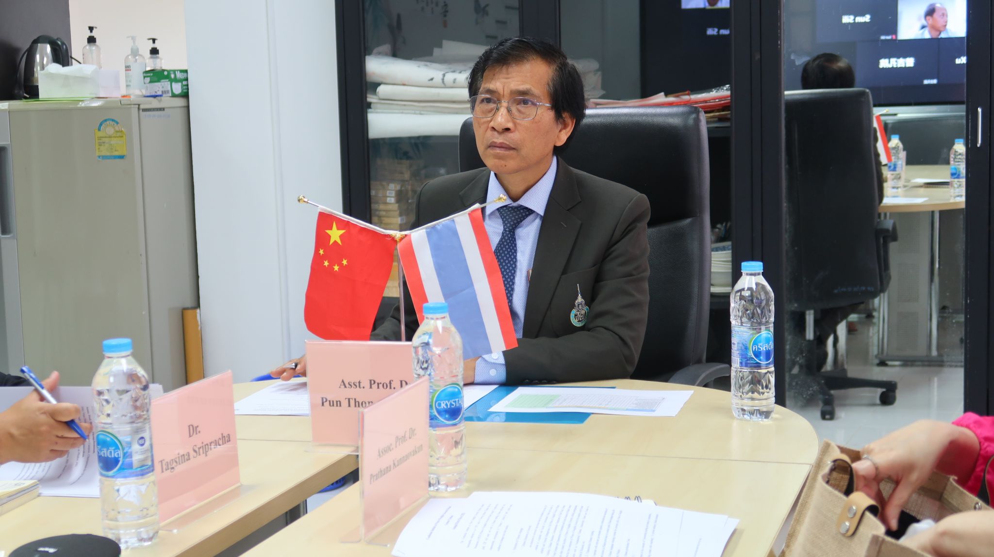 永利集团88304官网国际合作处处长崔巍、国际教育学院院长李颖洁、审计处肖平主管出席了会议,此外参加会议的还有宋卡王子大学普吉孔子学院泰方院长Prathana Kannaovakun、宋卡王子大学普吉分校国际事务校长助理Tagsina Sripracha等。会议由孔子学院办公室主任徐晓红主持。