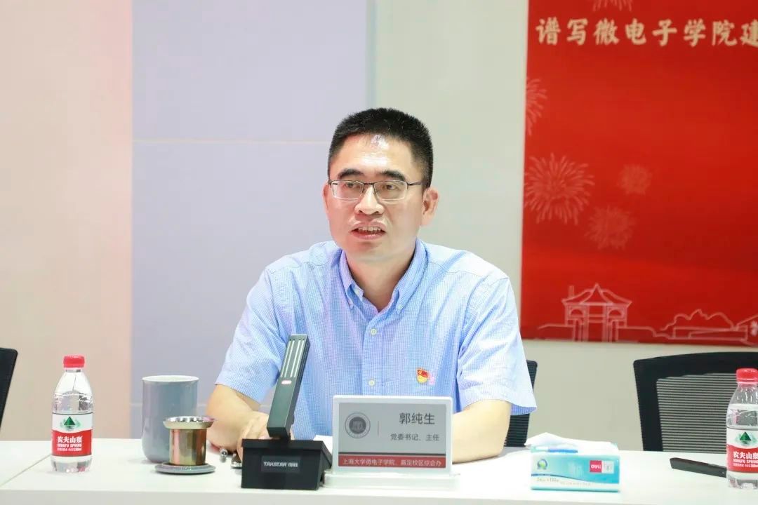 7月3日,微电子学院党委、嘉定镇街道党工委在微电子学院大楼101开展主题教育联组学习。嘉定镇街道党工委副书记、办事处主任胡建会,嘉定镇街道党工委副书记王陈芳、张敏,嘉定镇街道党工委委员、办事处副主任冯晴,嘉定镇街道党工委委员、纪工委书记、监察办主任张慧,嘉定校区综合办主任、微电子学院党委书记郭纯生,嘉定校区综合办副主任陈新、张其,微电子学院党委副书记、副院长袁铭,副院长胡挺、路秀真出席,学习会由郭纯生主持。