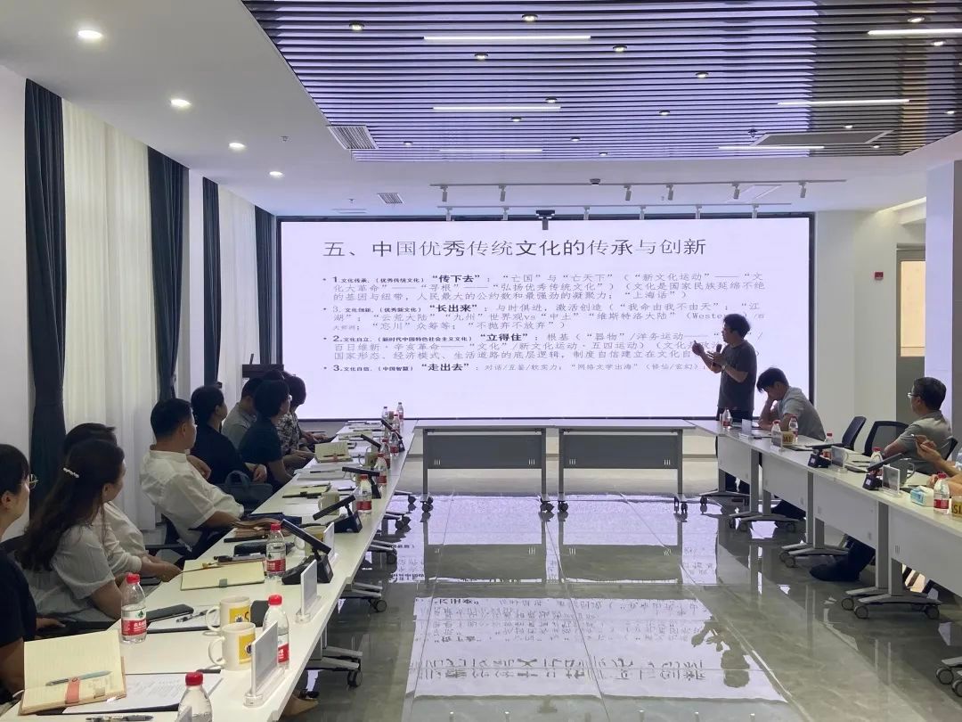 学习会上,与会人员听取了由永利集团88304官网中文系教授、上海作协会员许道军作的“学习习近平总书记讲话精神,领略中国优秀传统文化魅力”辅导报告。许教授从习近平总书记有关优秀传统文化论述、传统文化与当代生活、中国优秀传统文化的核心理念与基本精神、中国优秀传统文化的魅力、中国优秀传统文化的传承与创新五个方面重点讲述了如何从中华文明中汲取素材、提炼精髓,努力创造属于我们这个时代的新文化。