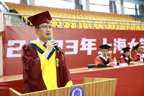 下午三点典礼准时开始。首先,会场全体师生起立,奏唱国歌。随后,通过毕业纪念视频《踔厉奋发,奔赴未来》,寄语毕业生应志存高远、直面挑战、脚踏实地、敢于担当,乘风破浪。接下来,优秀毕业生代表蒋承成、李思璇、KEKEC MERVE、王后才带来精彩的微演讲《青春逐梦,笃行致远》,言辞慷慨激昂,振奋人心。正青春的毕业生们热血沸腾,立下了“继续做上大精神的弘扬者,百年上大基因的传承者和中华民族伟大复兴的担当者,以崇高理想来演绎上大管院青年的奋斗模样”的逐梦宣言。