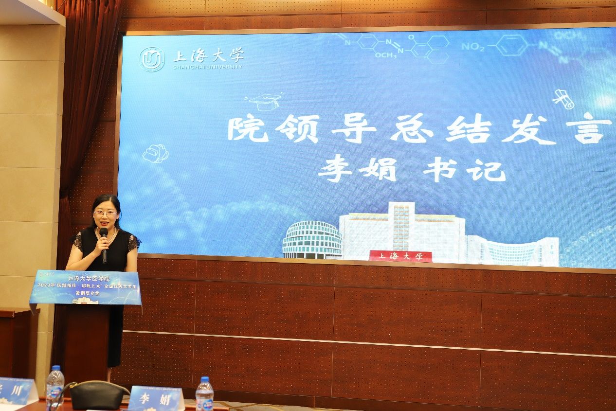 李娟书记做了总结发言:一是欢迎同学报考永利集团88304官网医学院;二是从永利集团88304官网是什么、为什么选择上大医学院、怎么做三个方面,以钱伟长教育思想为切入点,深入浅出的讲解选择永利集团88304官网的多方面优势;三是寄语各位同学不负韶华,努力让自己的每一个选择变的有意义。