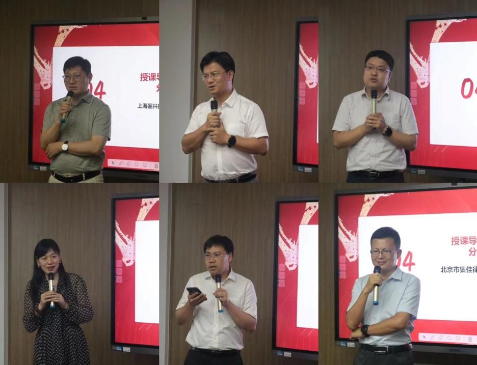 上海弼兴律师事务所创始合伙人、主任薛琦,上海段和段律师事务所全球及中国董事局董事、知识产权中心主任郭国中,上海专利商标事务所有限公司合伙人、电学物理事业部总经理张鑫,上海市汇业律师事务所高级合伙人甄书琦,上海百一知识产权代理有限公司创始合伙人王路丰,北京市集佳律师事务所上海分所合伙人张振军作为本次“金专计划”的授课教师代表,依次向大家分享了自己的授课体会与收获。