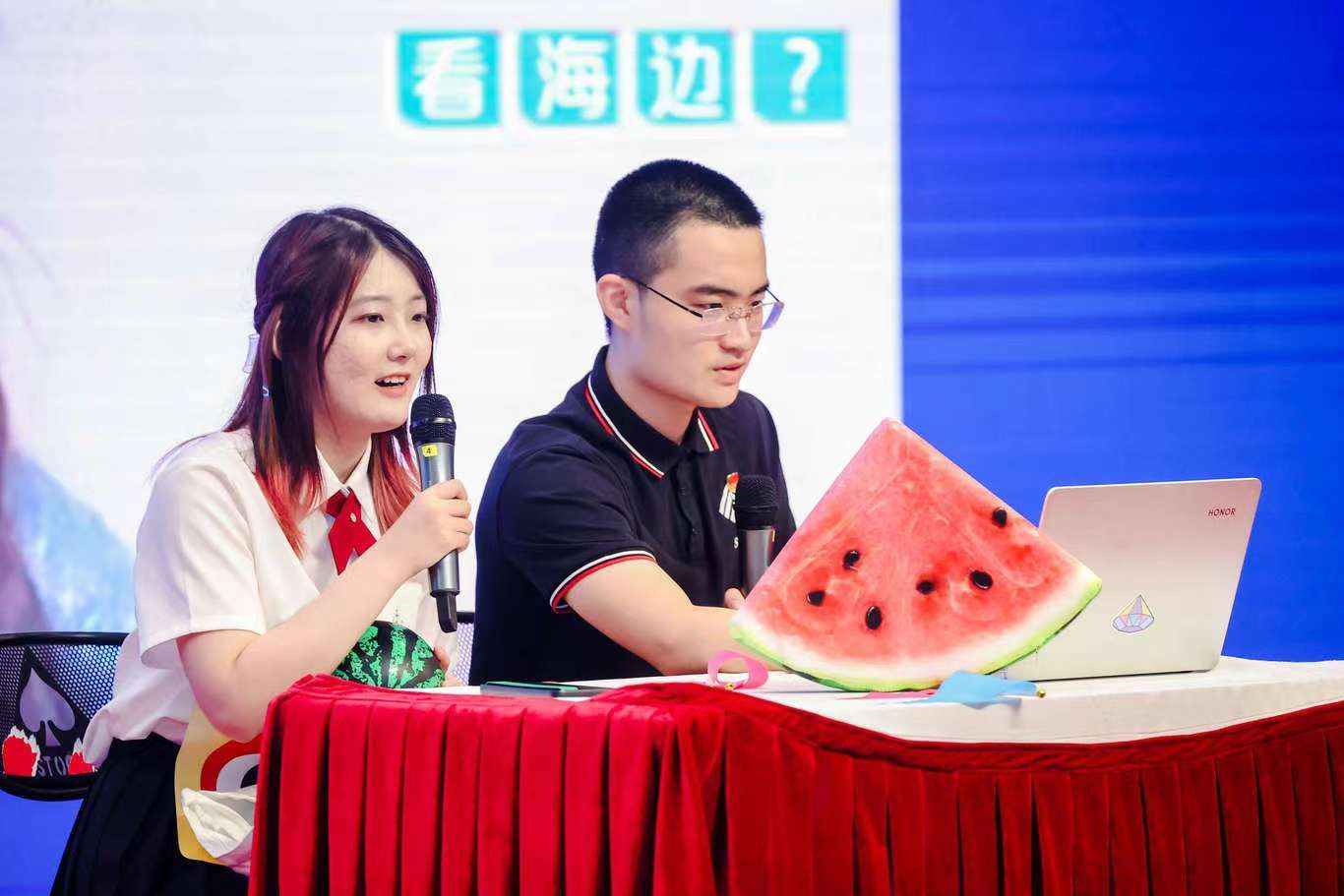 本科毕业生金成容、张依芸、姜宇潇等同学演绎了自编自导的小品《时间都去哪儿了》,用有趣新颖的方式展现了在社会学院学习的日常生活,表达了对学院的不舍,同时也给毕业们送上了深深的祝福。