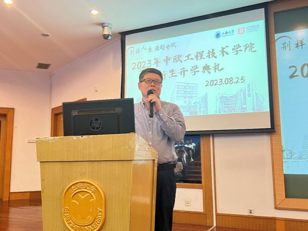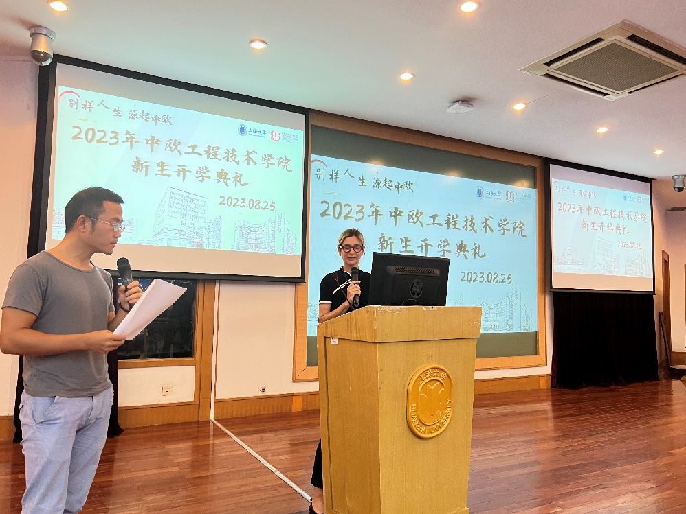 伴随着266名新同学来到永利集团88304官网中欧学院,开启人生新篇章,8月25日下午,在宝山校区J202举行中欧工程技术学院开学典礼。学院党委书记刘建勇,党委副书记、副院长周轶,副院长王灵,法方教务主任LaureMinassion,法语教师金鹏,专业课教师许婧靓,学院辅导员以及全体新生参加了本次开学典礼。
