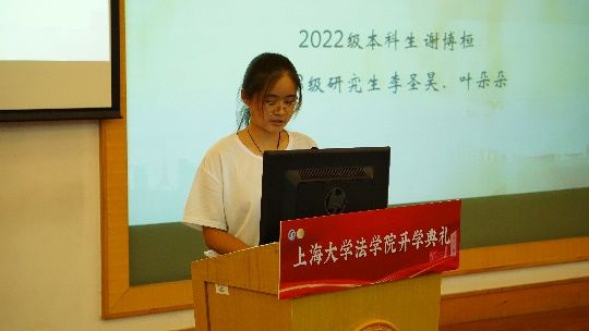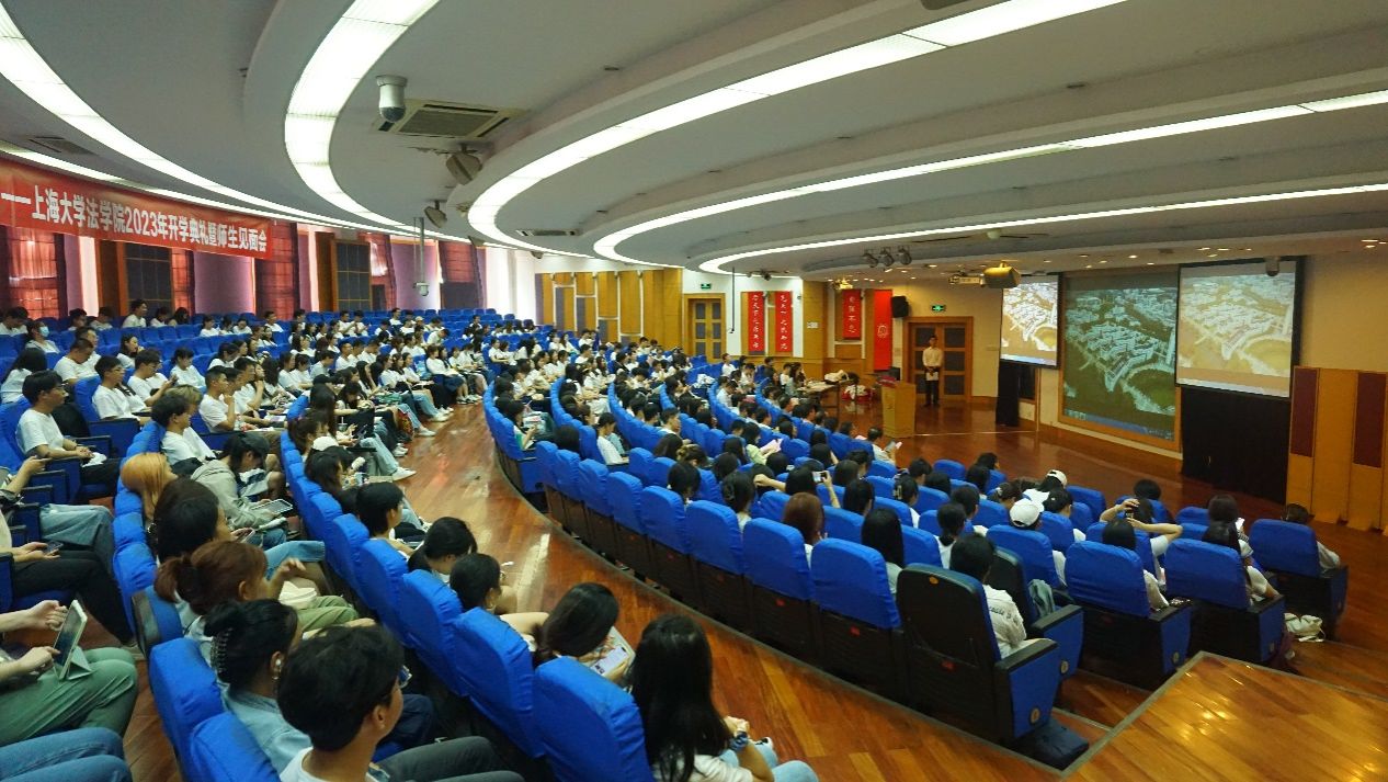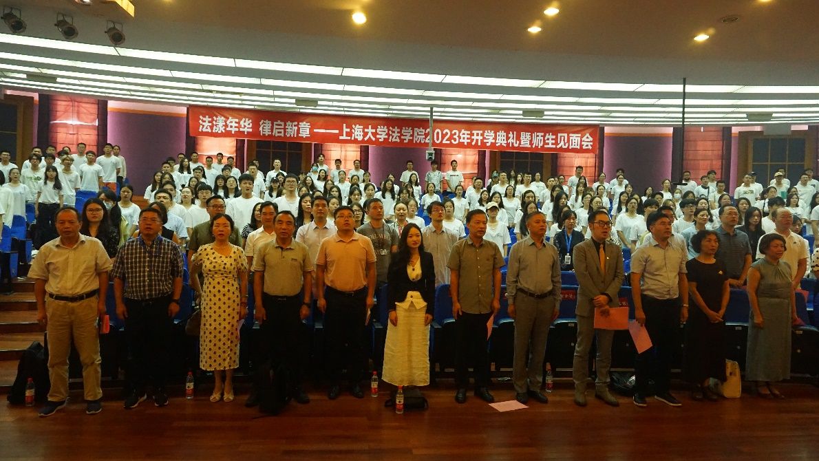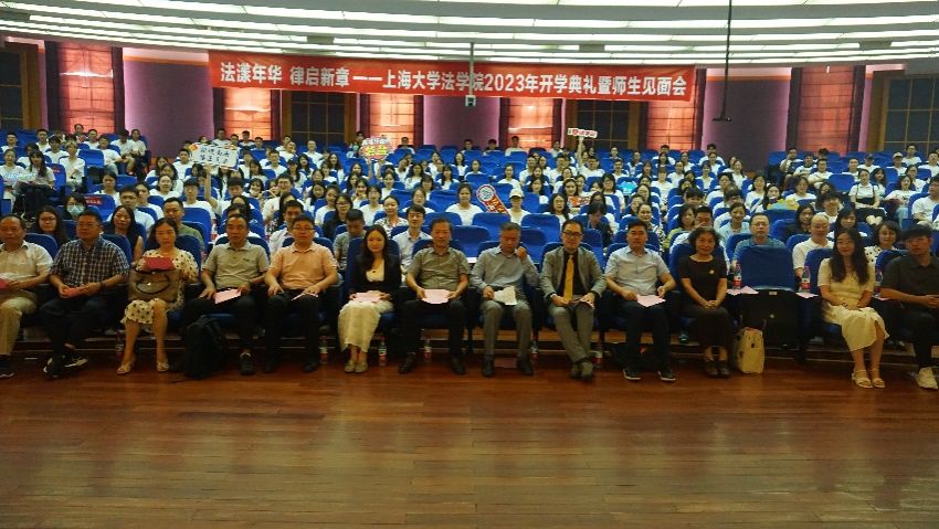 在这秋风送爽,硕果飘香的季节,法学院本研师生欢聚一堂,于9月1日下午,在宝山校区J202方润华讲堂举行2023年新生开学典礼暨研究生导师见面会。法学院党委书记徐国明老师,法学院院长李凤章老师、法学院党委副书记副院长于伟老师、法学院副院长袁真富老师、优秀校友代表、泰和泰(上海)律师事务所律师、高级合伙人应莹律师、泰和泰(上海)律师事务所专家顾问谢云泽律师,学院全体教师和新生参加。开学典礼由法学院2023届硕士研究生连顺祥主持。