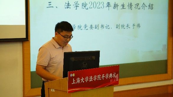 党委副书记、副院长于伟老师介绍了2023年法学院本科生与研究生的新生情况。2023年,法学院共迎来了339名新生。少年当有凌云志,万里长空竞风流。希望这339名新生能够尽快融入法学院的大家庭,不负韶光,勇往直前。