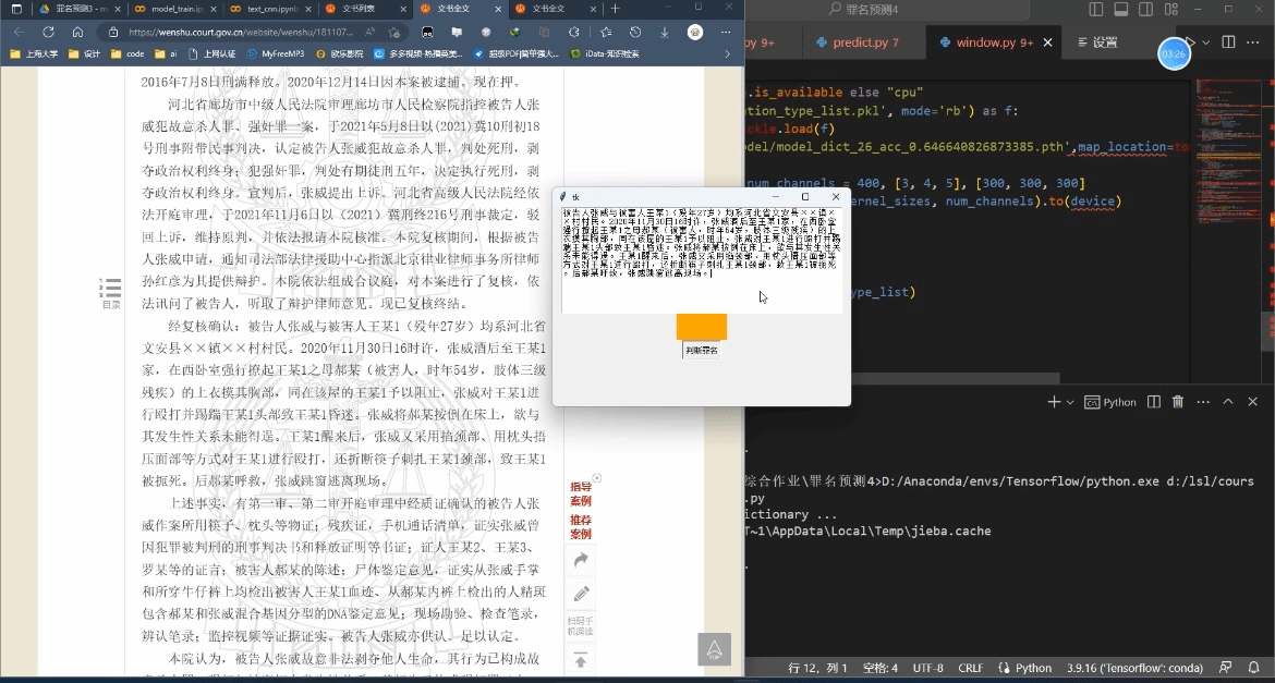 在整合前期访谈调研材料的基础上,实践团队总结出上海法院在体系建设、应用系统建设和司法伦理建设三方面值得外省市推广、学习的特色经验,以及上海法院人工智能技术赋能司法目前还存在的技术和伦理方面的问题。在技术应用方面,目前还存在着训练集需大量人工标注、数据集质量和可靠性较低、类案推送系统智能度不高、音字转换、OCR识别准确率不高、深度学习缺乏可解释性和透明度等问题,需要考虑使用半监督学习或无监督学习方法、充分运用自然语言处理技术、采用多语言或方言模型等方法解决。在司法伦理方面,在大数据、人工智能与司法领域融合现象的背后,存在着司法人工智能功能异化的风险,可能导致司法固有属性被消解、司法伦理观念受到冲击、法官主体地位被削弱以及个人信息泄漏的问题。对此,实践团队提出司法大数据与人工智能技术的应用要充分尊重司法的被动性和透明性、限制裁判文书司法大数据决策模型的应用、确定司法人工智能技术的核心禁区等可行建议。调研结束后,团队成员基于实践情况,结合专业所学,开发出罪名预测小程序。