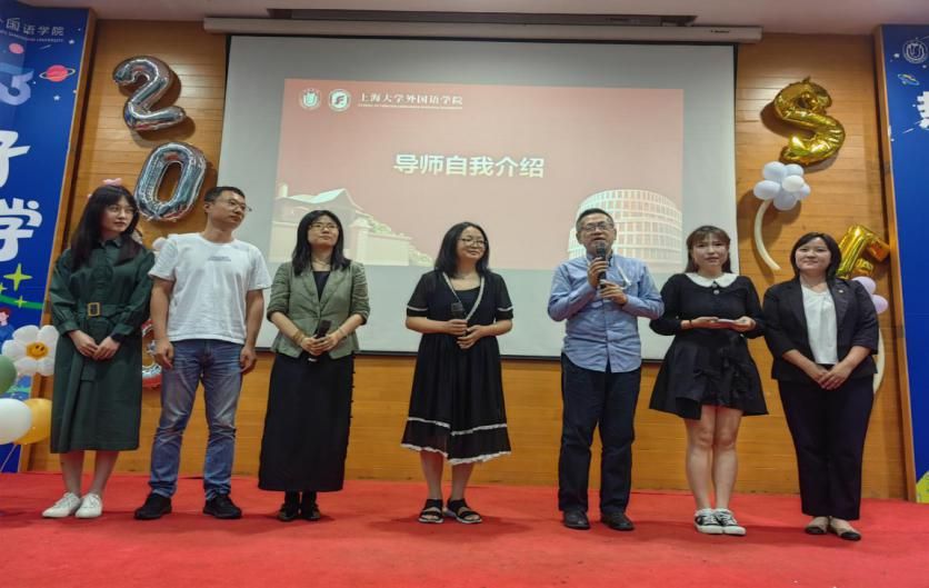 接着,英语系、日语系、法语系各位导师分别上台进行自我介绍,介绍自己的研究方向,并欢迎大家一同学习交流。研究生辅导员曹若兰老师、学硕教秘张静老师、专硕教秘姚远老师上台与大家见面,并分别介绍各自的工作内容。