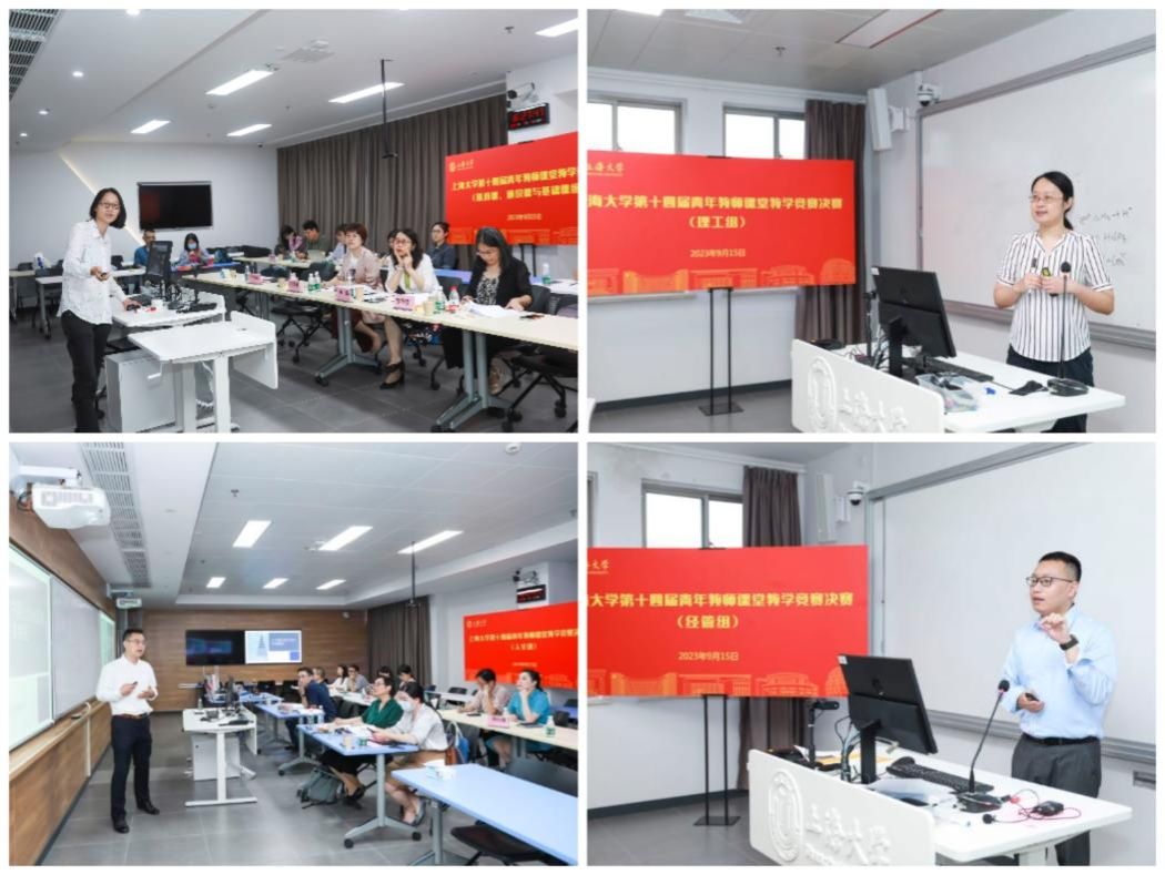 2023年9月15日,永利集团88304官网第十四届青年教师本科课堂教学竞赛(以下简称“校青赛”)决赛在宝山校区隆重举行,来26个院系的36位优秀青年教师参加了本次校青赛竞赛决赛。学校党委常委、教师工作部部长曹为民,组织人事部副部长、人事处处长刘丽兰,审计处处长尹应凯,教务部常务副部长彭章友、教务部副部长、教发中心主任辛明军、校工会常务副主席顾莹等行政部处领导、来自复旦大学、上海交通大学等12位校外同行评委以及校内同行专家、青年教师代表等共70余人参加校青赛开幕式和各分赛场的比赛。