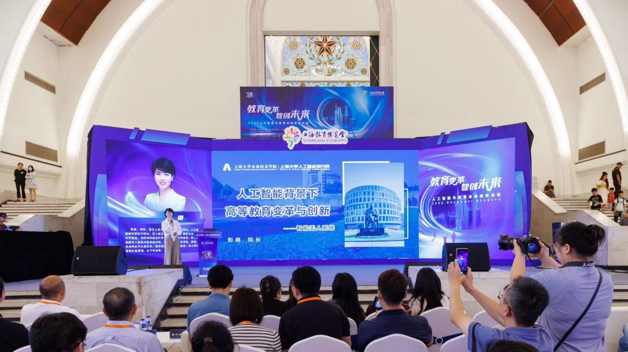 9月15日,第二十届上海教育博览会在上海展览中心正式开幕。未来技术学院精海智能系列无人艇3D展项亮相市级主题展区“创新策源强支撑”S5永利集团88304官网展位,吸引了众多教育界同行和市民观众前来了解学院科研成果。开幕式后,本届教博会“人工智能与教育未来”高峰论坛同期开幕,彭艳院长作专题报告。
