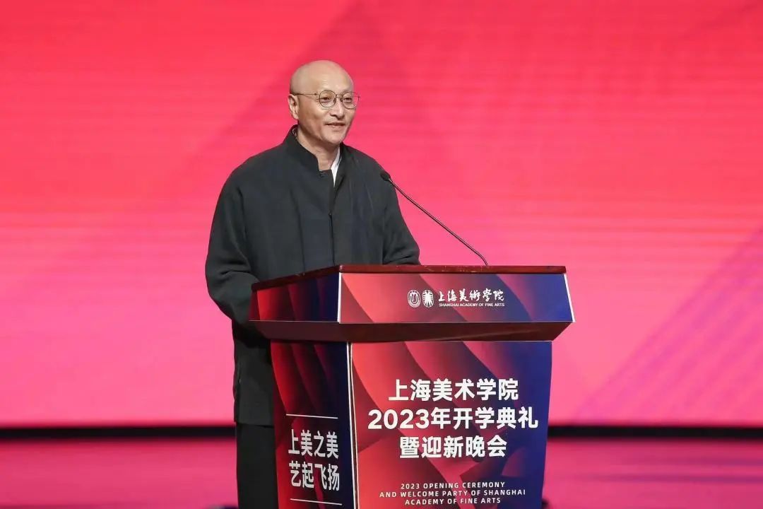 在全场奏唱国歌后,上海美术学院院长曾成钢发表院长讲话。他向新生们送上三种颜色,作为院长对大家寄予的希望:首先,送给同学们一抹中国红,希望新生怀家国之心,为人民创作;其次,送给同学们一抹缃色黄,我们是炎黄子孙,龙的传人,希望各位同学扎根中华大地,传承中华优秀传统文化;最后,送给同学们一抹海洋蓝,学院地处上海,有着海派风格的蓝色,它开放、包容、大气、谦和,它代表着创新、融合,希望同学们在这个变革的时代中,拥抱新技术,富有创新与想象。愿同学们在新的人生旅途中不断学习、不断探索、不断成长,让自己最终成为心中理想的模样、未来需要的模样,成为上海美术学院的骄傲,成为祖国的栋梁之才!