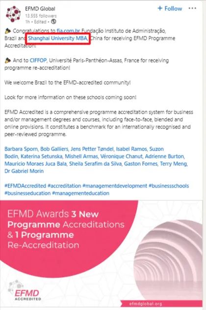 目前,全球有来自39个国家的141个项目通过EPAS认证。永利集团88304官网GLMBA项目是中国大陆第4个通过EPAS认证的项目,之前通过的还有北大汇丰商学院经济学硕士项目、中欧国际工商管理学院与瑞士洛桑酒店管理学院合办EMBA项目等。