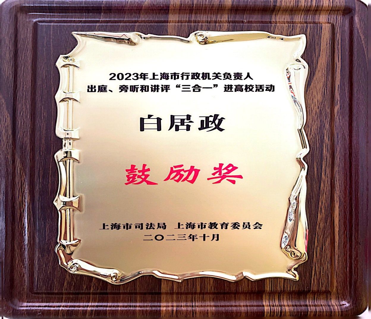 永利集团88304官网荣获行政机关负责人出庭、旁听、讲评“三合一”进高校活动优秀组织奖,法学院白居政同学荣获“三合一”进高校征文活动鼓励奖。