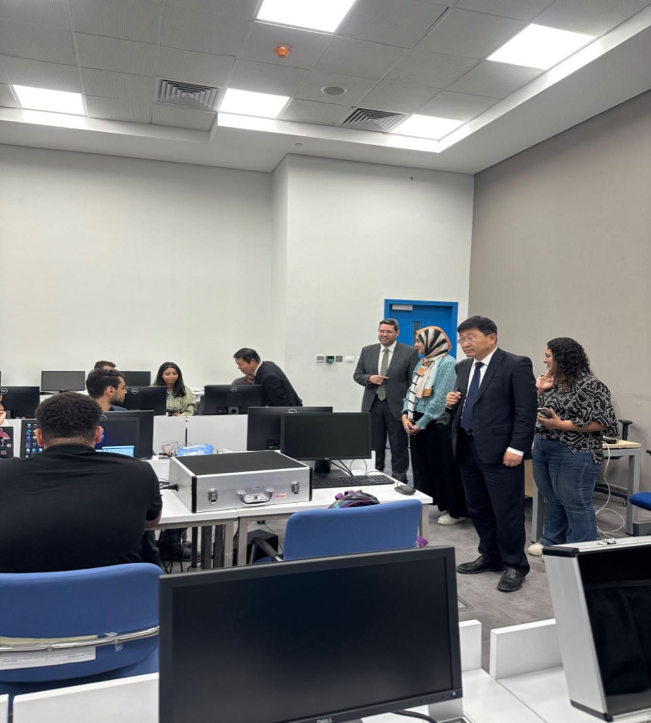 10月23日,代表团一行访问了阿莱曼国际大学,与该校校长Prof.Essam El Kordi和副校长Prof.Hesham Gaber进行了会谈。双方就建立校级层面的全面合作进行了探讨和交流,并探讨了签署校级框架协议和学生交换协议的具体细节,希望在两校合作的大平台下,拓展两校在商科、工科和艺术学科等领域的合作,从而带动学科合作、人才培养的全面、可持续发展。代表团一行还参观了该校的相关学科实验室等。