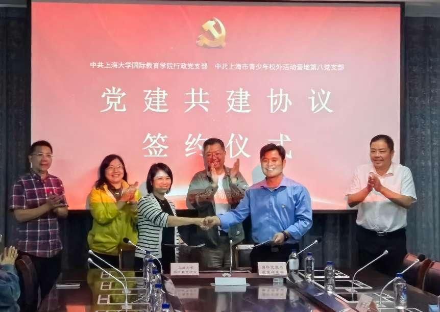 上海市青少年校外活动营地党总支书记、主任杨昕,营地总支委员、副主任房佳杰,营地第八党支部书记李强,永利集团88304官网国际部党委书记王丽娜,国际部党委副书记、国际教育学院副院长陈秀猛,国际教育学院行政支部书记欧阳晓琴等出席了此次活动。