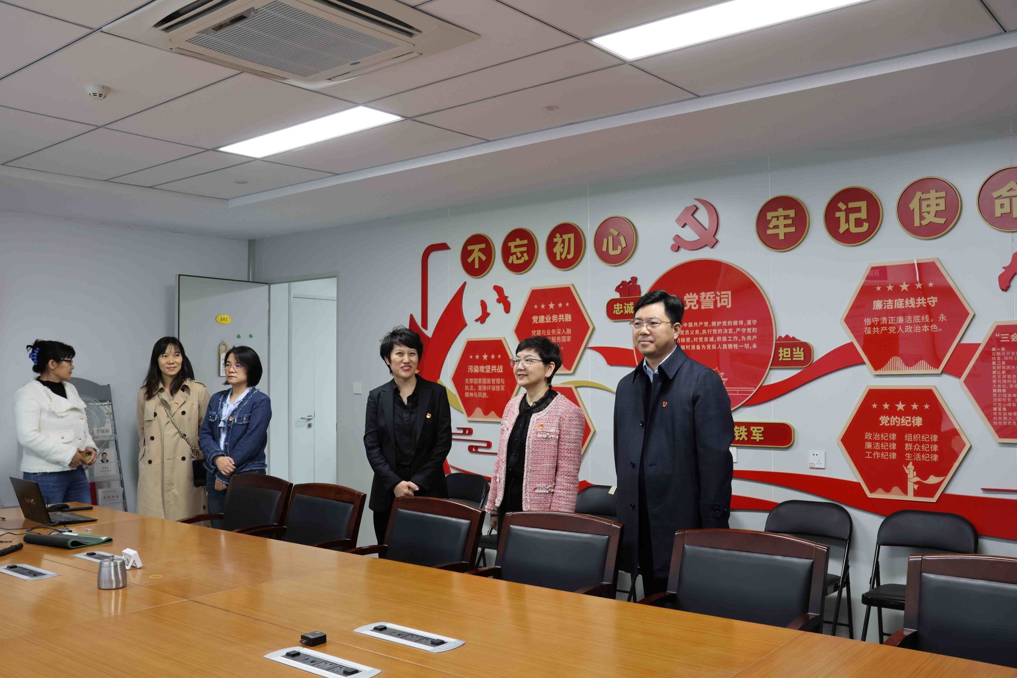 环化学院党委副书记孙延枫,党委副书记、副院长潘赟,环境系副系主任许云峰、健康纳米教工党支部纪检委员、学院办公室副主任王彬,健康纳米教工党支部副书记、学院人事干事滕晓黎及学院宣传员乔雨等参与座谈。