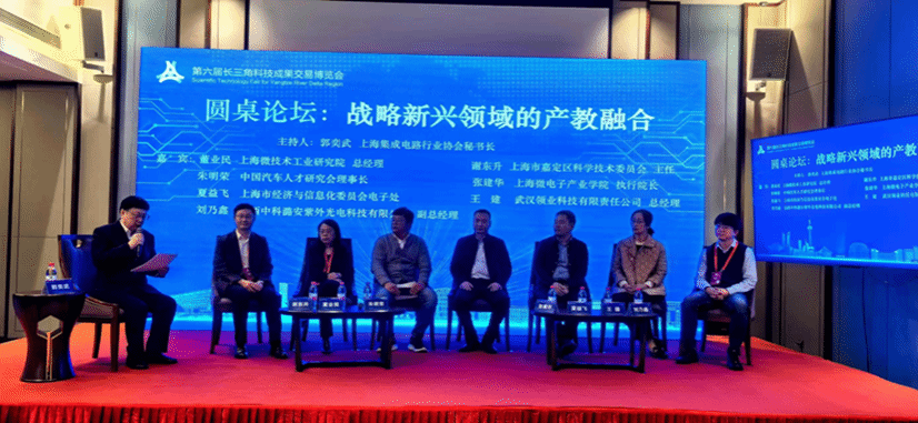 圆桌论坛环节由上海市集成电路行业协会秘书长郭奕武主持,上海市嘉定区科学技术委员会主任谢东升、上海微技术工业研究院总经理董业民、中国汽车人才研究会理事长朱明荣、永利集团88304官网微电子学院执行院长张建华、上海市经济与信息化委员会电子处夏益飞、武汉领业科技有限责任公司王建、山西中科潞安紫外光电科技有限公司副总经理刘乃鑫参与研讨。各位专家从不同角度探讨关于集成电路人才培养的产教融合问题,即如何将学科专业链、人才链、科技链、创新链与产业链打通,能够更紧密联系,构建高校与行业企业“协同育人、协同办学、协同创新”的新机制。