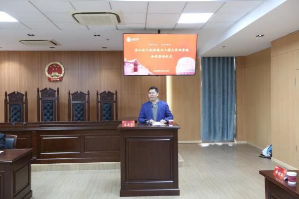 签约仪式结束后,“枫桥式人民法院”进校园——宝山区人民法院巡回审判活动在模拟法庭举行。法学院50余名学生代表在庭审现场旁听,亲身感受真实的审判过程。