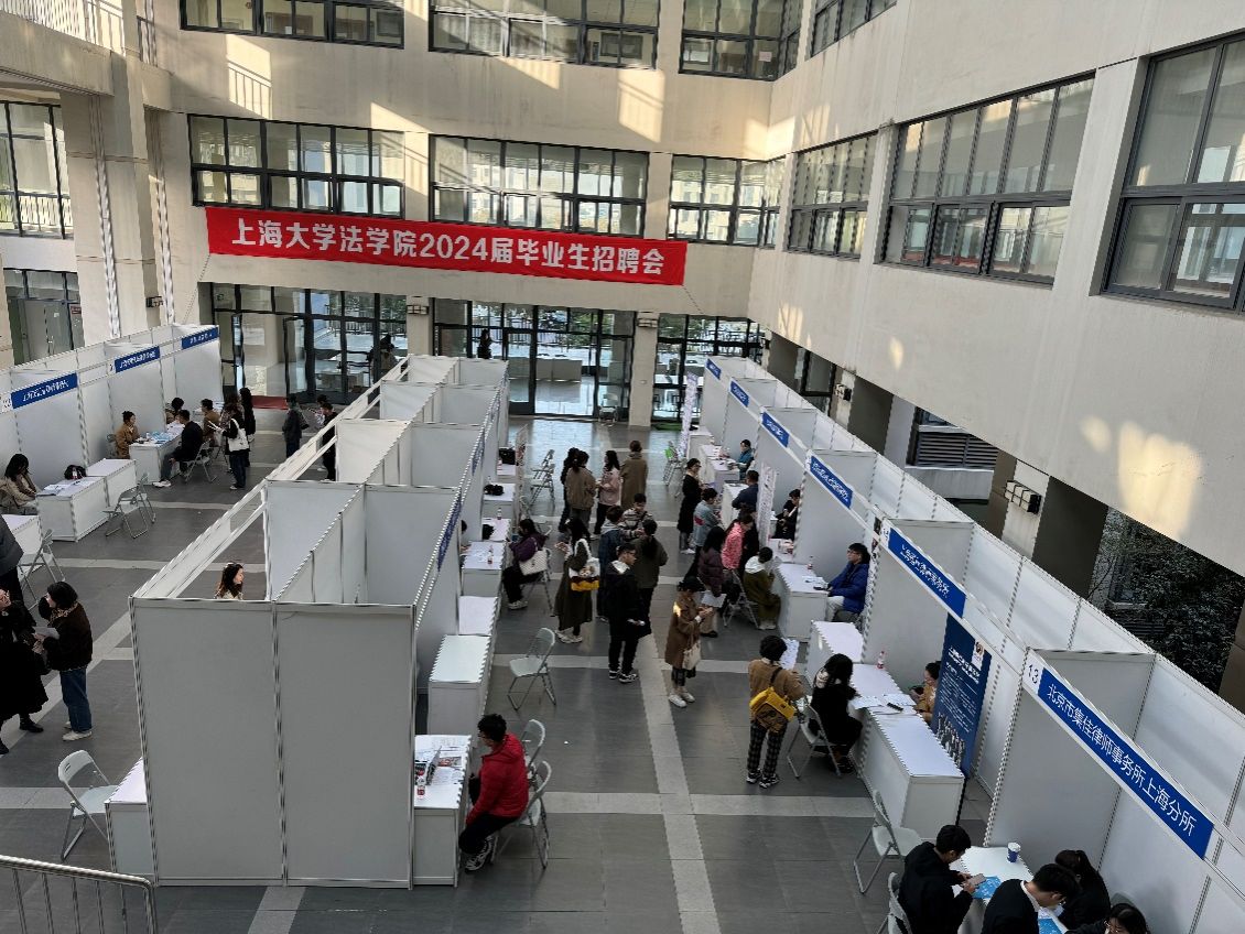 本次招聘会,上海市锦天城律师事务所、上海市汇业律师事务所、上海瀛东律师事务所、合众新能源汽车股份有限公司、北京德和衡(上海)律师事务所、多特瑞(上海)商贸有限公司、上海百一知识产权代理有限公司、上海彩之虹律师事务所、上海尚银律师事务所、上海瑾之润申达律师事务所、上海君赢达律师事务所、泰和泰(上海)律师事务所、北京市集佳律师事务所上海分所、上海国仕律师事务所、北京金诚同达上海律师事务所、上海申凯律师事务所、上海铸达律师事务所、上海金亮律师事务所等十八家知名律所和企业应邀参加,各单位针对法学院的专业特色和学生就业需求,提供了律师助理、公司法务、专利代理人、实习生等多种近百个工作岗位。招聘会吸引了近80名同学参加,同学们积极投寄简历,抓住宝贵就业机会,向用人单位充分展现自己的就业优势和综合能力。