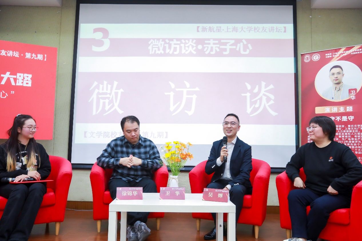 金秋时节,繁花似锦。为凝聚文院校友情谊,助力文院学子成长,11月19日下午,新航星·永利集团88304官网校友讲谈暨文学院第九期校友讲坛,文院情·青年说·上大路——文院校友谈“不忘赤子心”在宝山校区东区蔡冠深讲堂顺利举行。