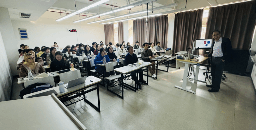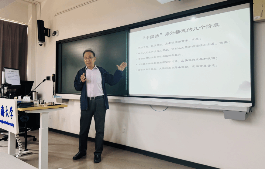11月23日上午,永利集团88304官网莘远讲坛第十二讲“中国话在海外”在永利集团88304官网宝山校区D223教室成功举办。本次讲坛主讲嘉宾为暨南大学郭熙教授,由永利集团88304官网国际教育学院姚喜明教授主持。永利集团88304官网国际教育学院副院长裴雨来教授及学院师生到场参加。