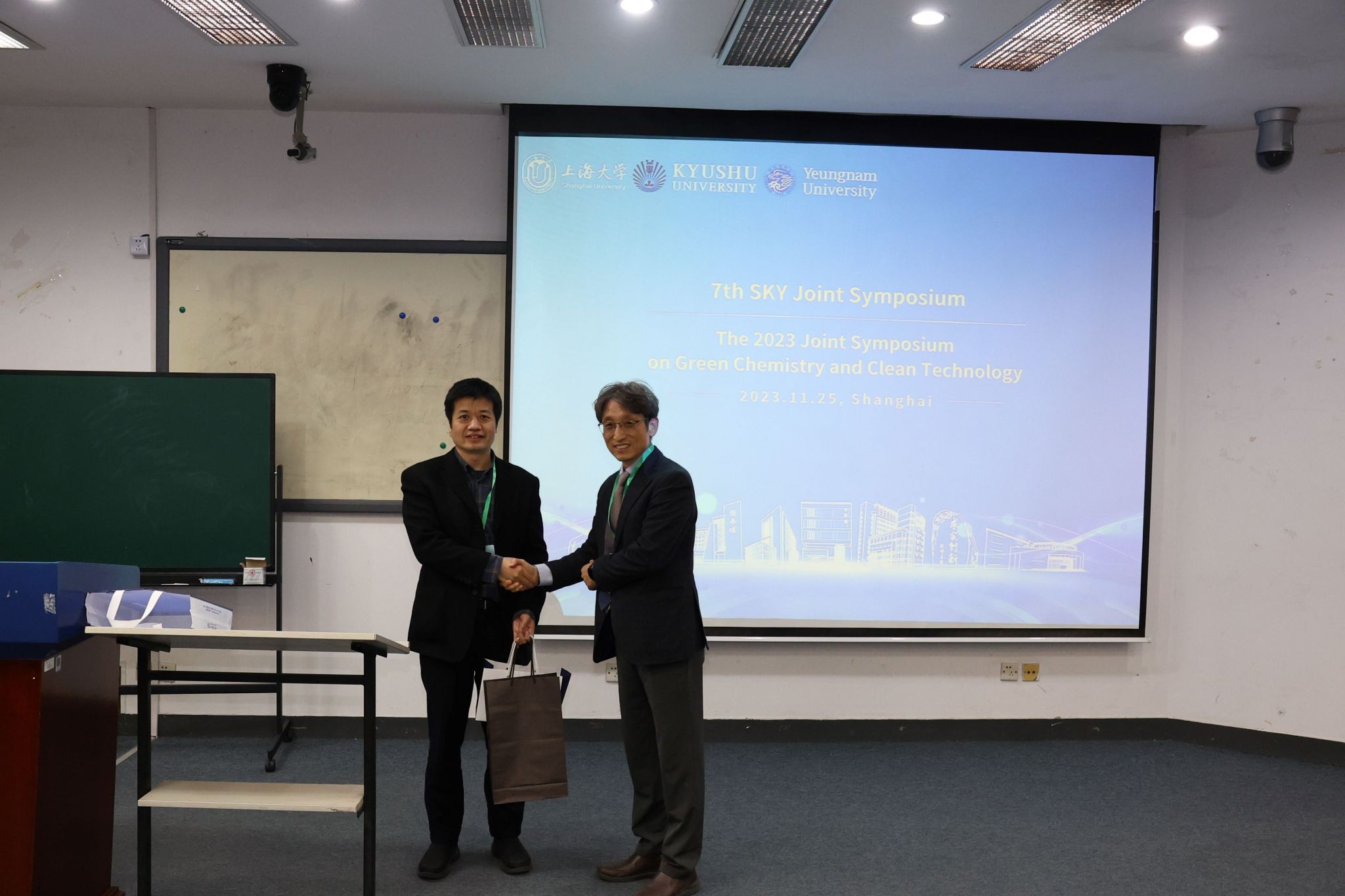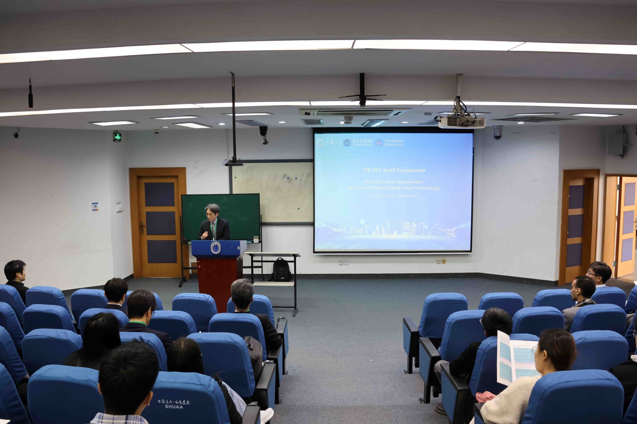 11月24-26日,第七届永利集团88304官网(中国)-岭南大学(韩国)-九州大学(日本)绿色化学与清洁技术联合研讨会(7st Joint Symposium of Shanghai University - Yeungnam University - Kyushu University on Green Chemistry and Clean Technology)在永利集团88304官网顺利召开。本次研讨会由永利集团88304官网环化学院主办,中日韩三国师生围绕当今环境和化工领域前沿技术方向与发展趋势进行深入研讨,为贯彻落实“双碳”战略目标,实现国家能源绿色低碳转型、推动绿色发展建言献策。