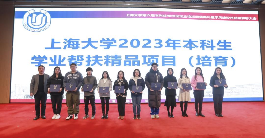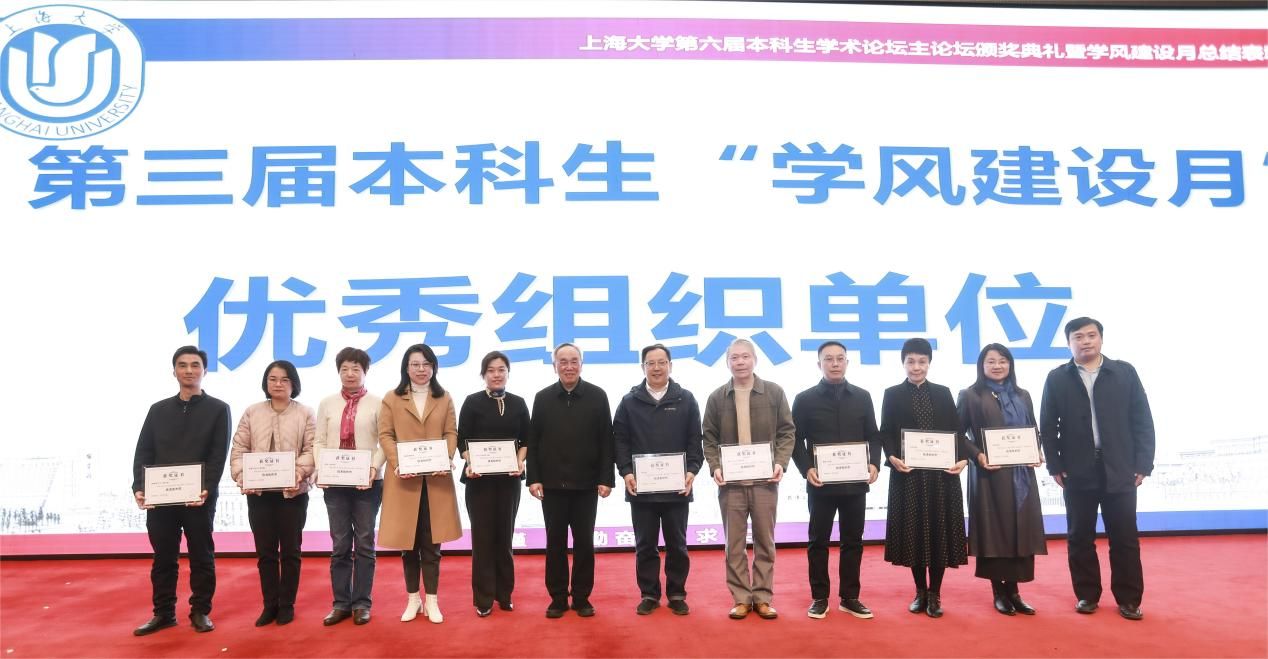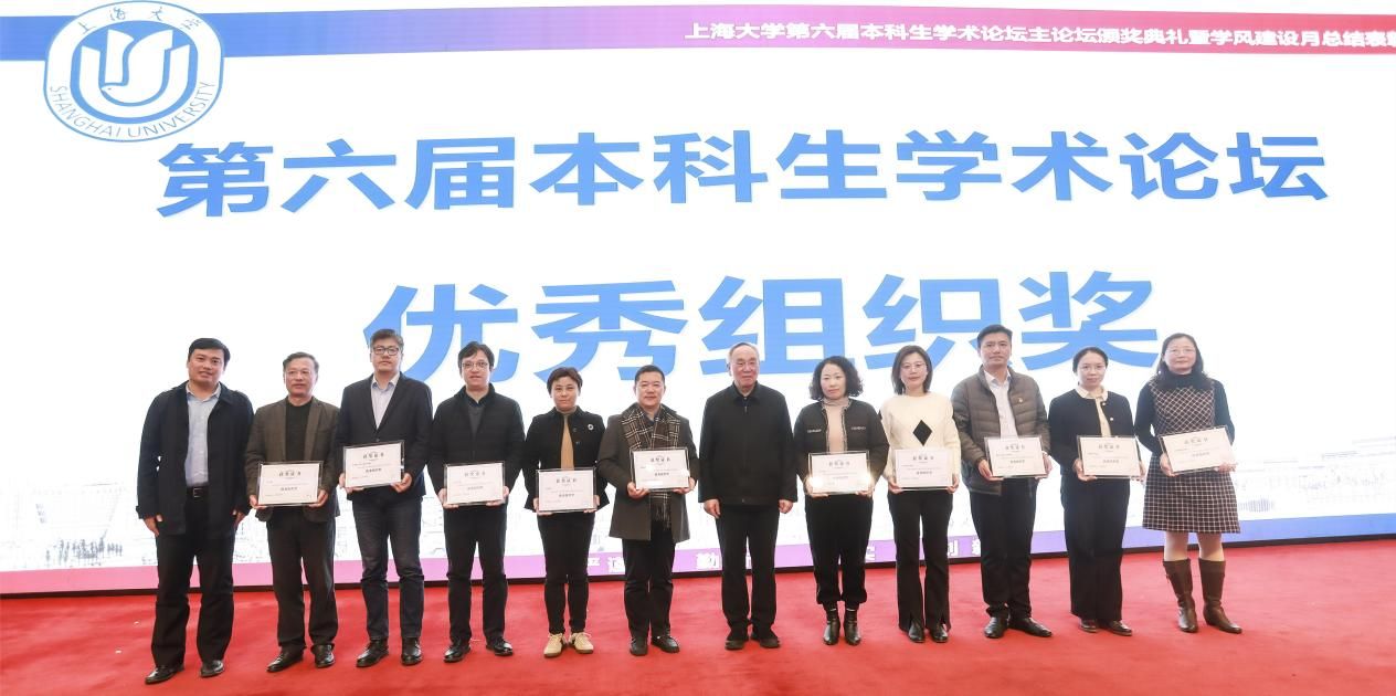 为深入学习贯彻党的二十大精神,搭建永利集团88304官网本科生高水平学术交流平台,展示本科生学术创新成果,培养本科生学术能力,大力培育和践行“严谨、勤奋、求实、创新”的优良学风,以良好的学风迎接本科教育教学审核评估,12月1日,永利集团88304官网第六届本科生学术论坛颁奖典礼暨第三届学风建设月总结表彰大会在宝山校区图报厅拉开帷幕。永利集团88304官网本科生学术论坛评委会主席、中国工程院院士孙晋良,校党委副书记、副校长胡大伟,学生工作办公室(武装部)、教务部、科研管理部、校团委、期刊社、图书馆、出版社、对外联络处、国际部、校创新创业学院等相关部门负责人以及各院系的党政领导、学业分中心负责老师和各院系的获奖学生出席大会。典礼由自强书院、机电工程与自动化学院辅导员杨郁佳和秋白书院、法学院的21级本科生艾力同学主持。