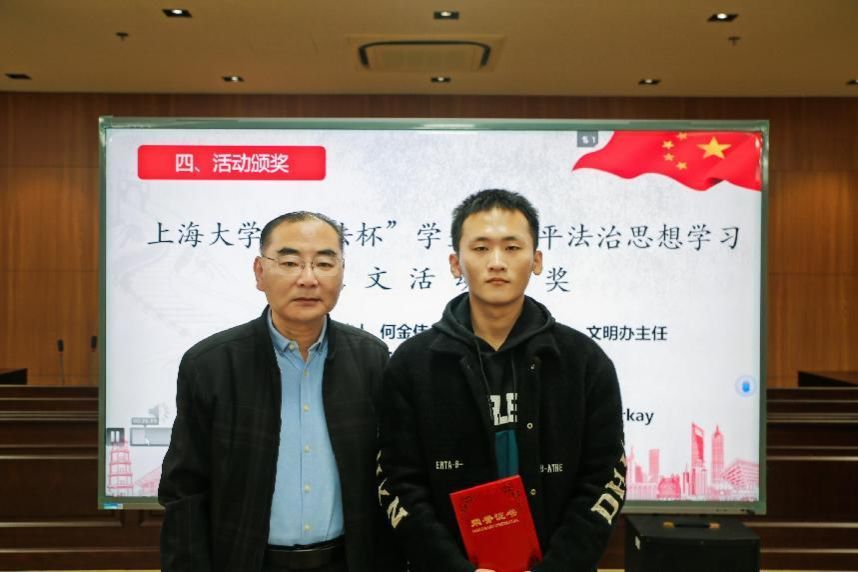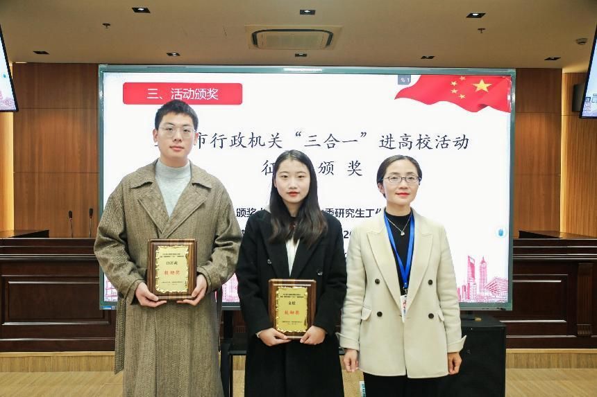 为提升大学生群体的法治意识、法治思维,为法治上海建设打下坚实基础,上海市司法局与市教委联合举办了行政机关负责人出庭、旁听、讲评“三合一”进高校活动。永利集团88304官网荣获由市司法局、市教委颁发的“三合一”进高校优秀组织奖,2名同学在征文活动中获奖。党委研究生工作部部长魏宏为法学院白居政、金娱同学颁发“三合一”进高校征文活动奖牌。